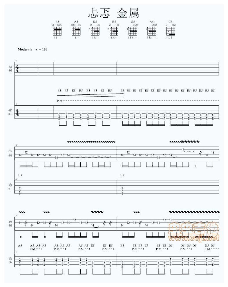 电吉他谱【忐忑】龚琳娜