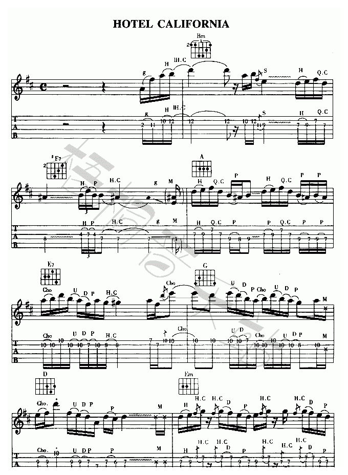 电吉他谱【加州旅馆】老鹰乐队简谱五线谱附歌词是飞鱼乐谱网于2015年04月18日 18:03:24整理更新,内容收录在电吉他乐谱栏目;飞鱼乐谱网免费分享专业、准确、规范、高清的电吉他乐谱简谱五线谱歌词等电子版资料,欢迎在线免费下载;飞鱼乐谱网无需注册会员,即可直接免费下载各类乐器学习相关资源。