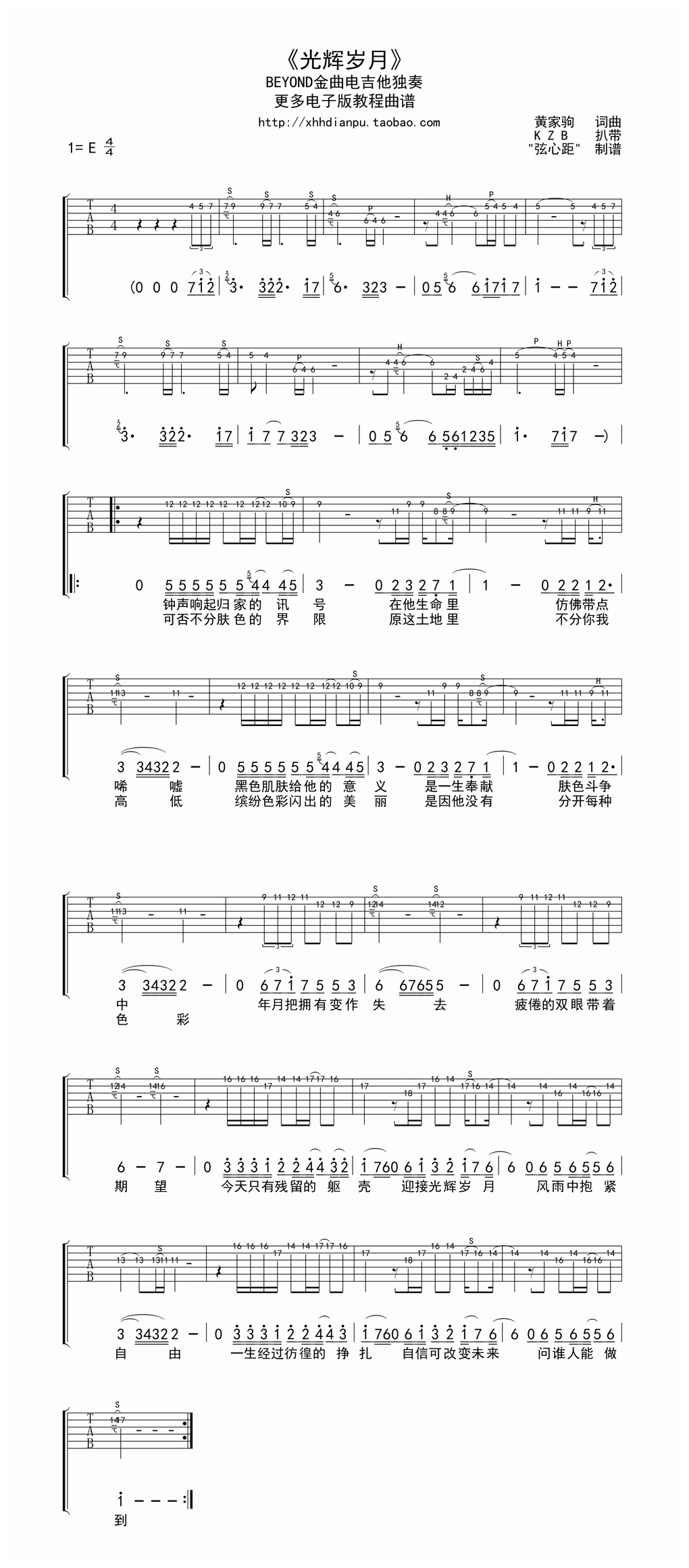 电吉他谱【光辉岁月】光辉岁月_电吉他乐谱