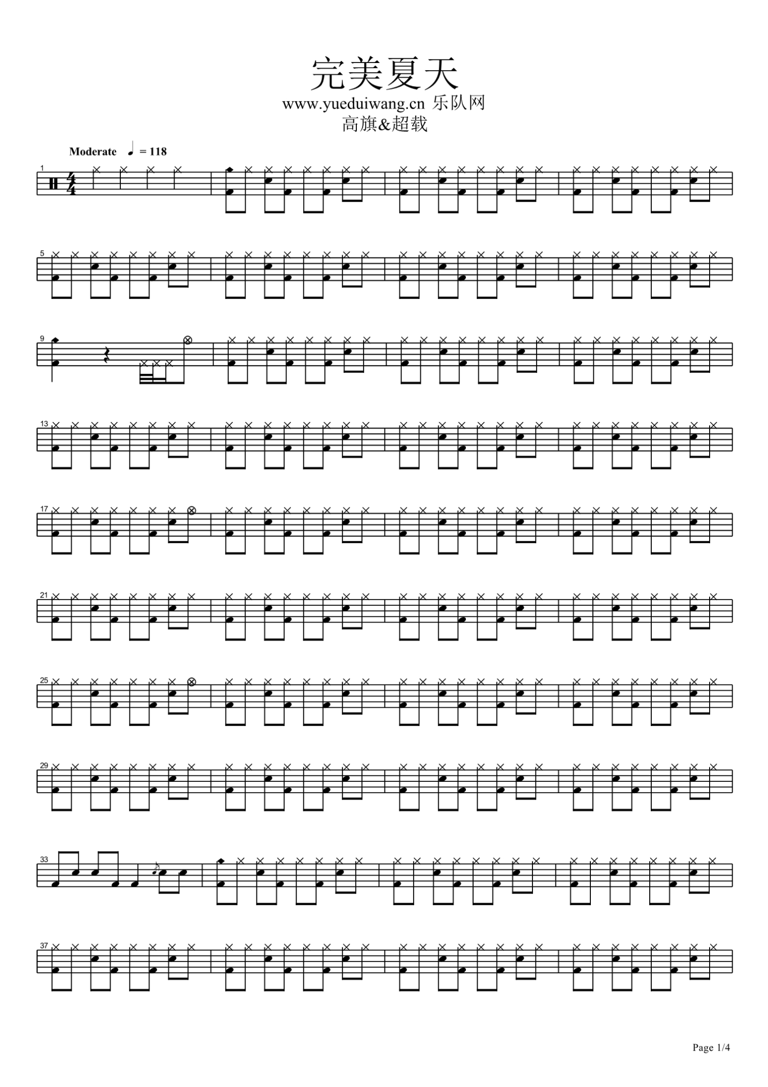 完美夏天鼓谱_超载乐队_原版架子鼓谱