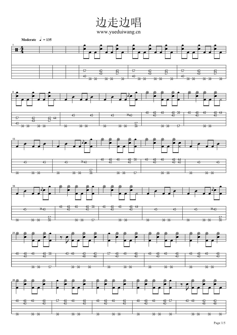 边走边唱架子鼓谱,汪峰的一首歌曲,4/4拍的节奏,曲谱由飞鱼曲谱更新上传,共5张高清图片架子鼓谱例,来源于网络转载,编配制谱者暂不详。