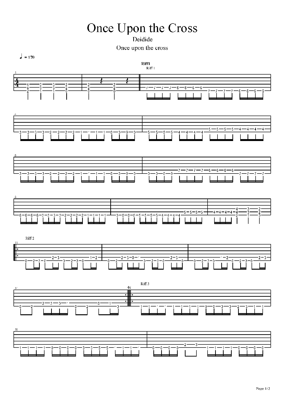 电吉他练习谱《Deicide - Once Upon the Cross》简谱五线谱附歌词是飞鱼乐谱网于2017年04月01日 20:45:00整理更新,内容收录在电吉他乐谱栏目;飞鱼乐谱网免费分享专业、准确、规范、高清的电吉他乐谱简谱五线谱歌词等电子版资料,欢迎在线免费下载;飞鱼乐谱网无需注册会员,即可直接免费下载各类乐器学习相关资源。