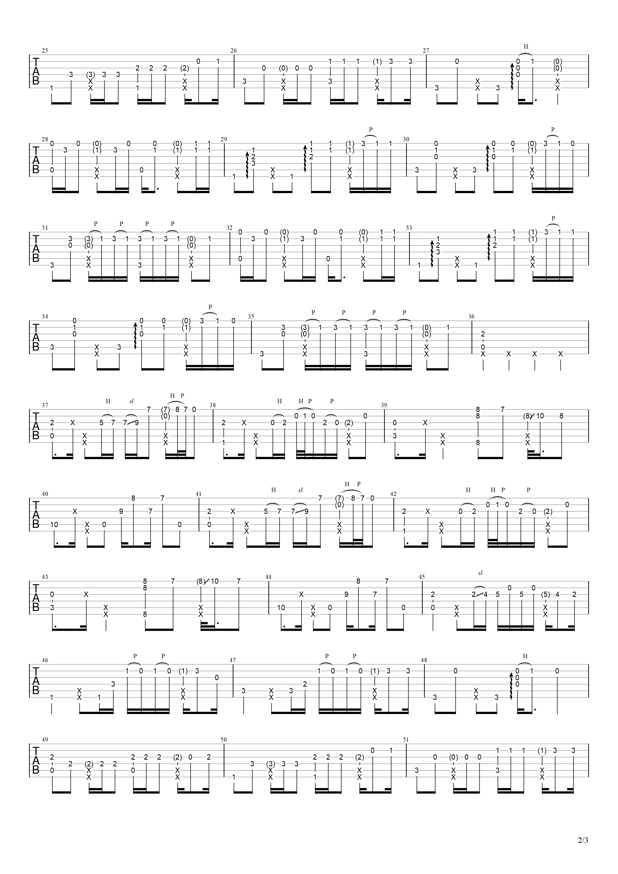 田子坊指弹吉他谱_陈亮_原版指弹谱_独奏六线谱