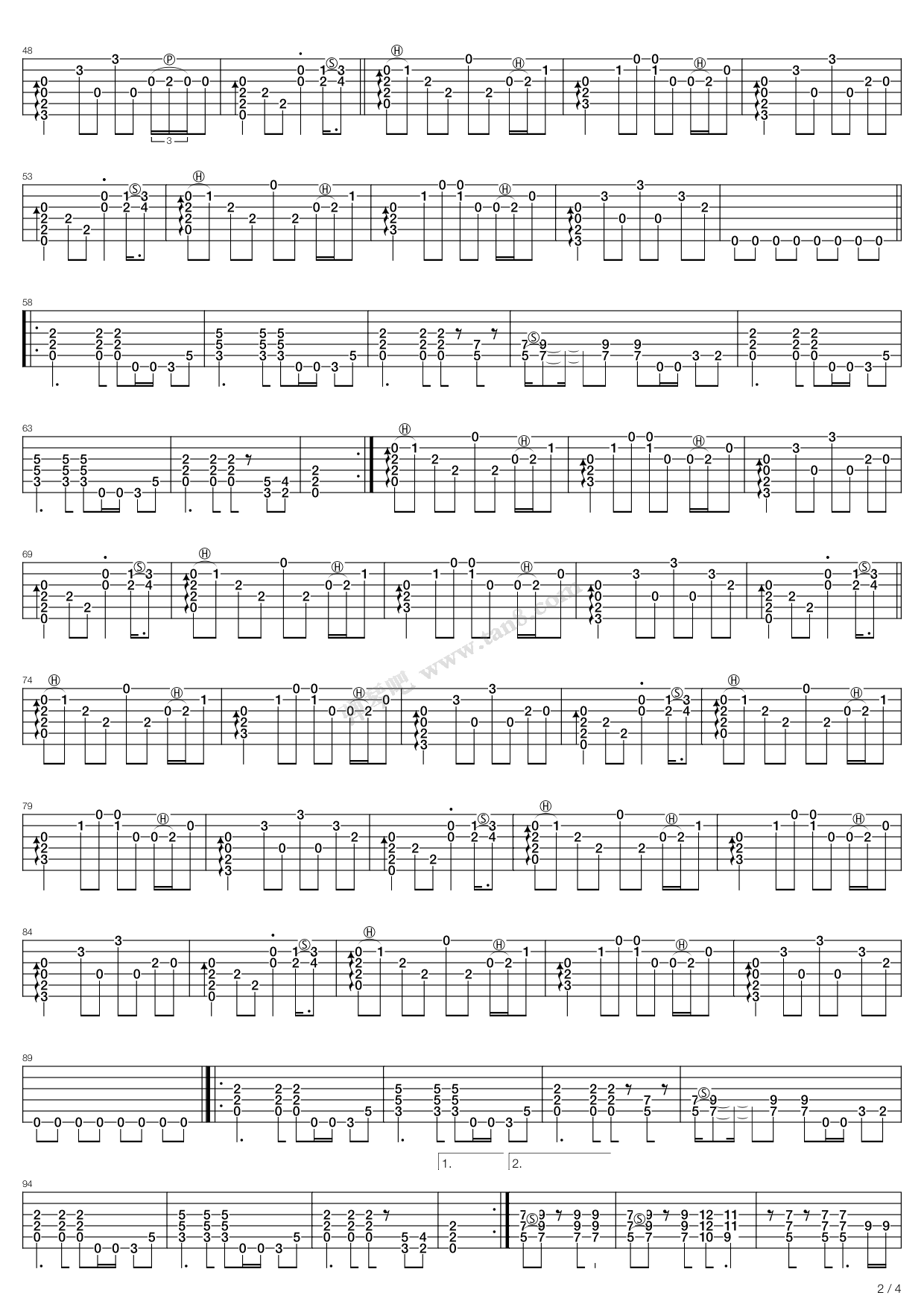 田子坊指弹吉他谱_陈亮_原版指弹谱_独奏六线谱