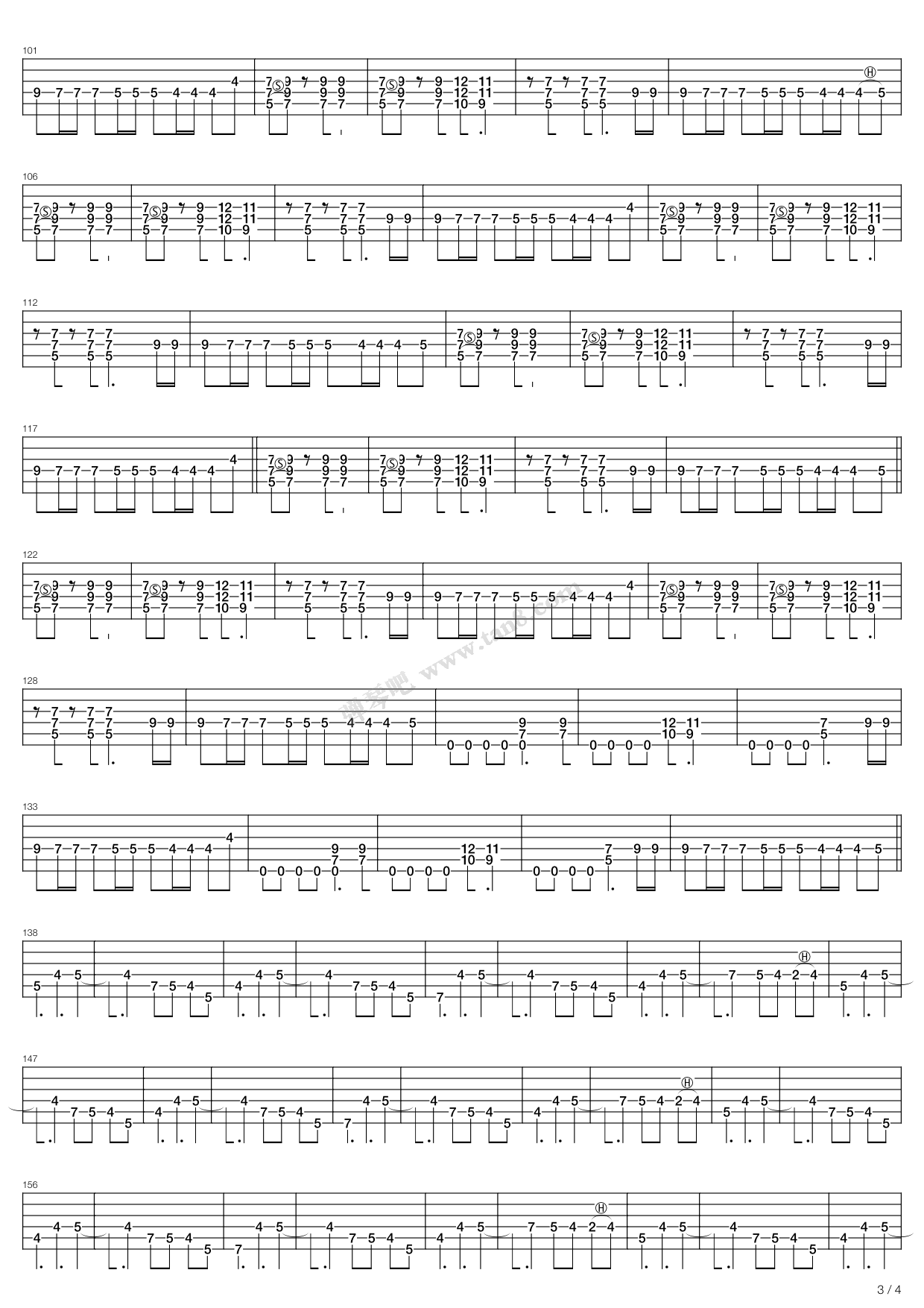 Fade To Black指弹谱_Metallica_原版指弹谱_独奏六线谱