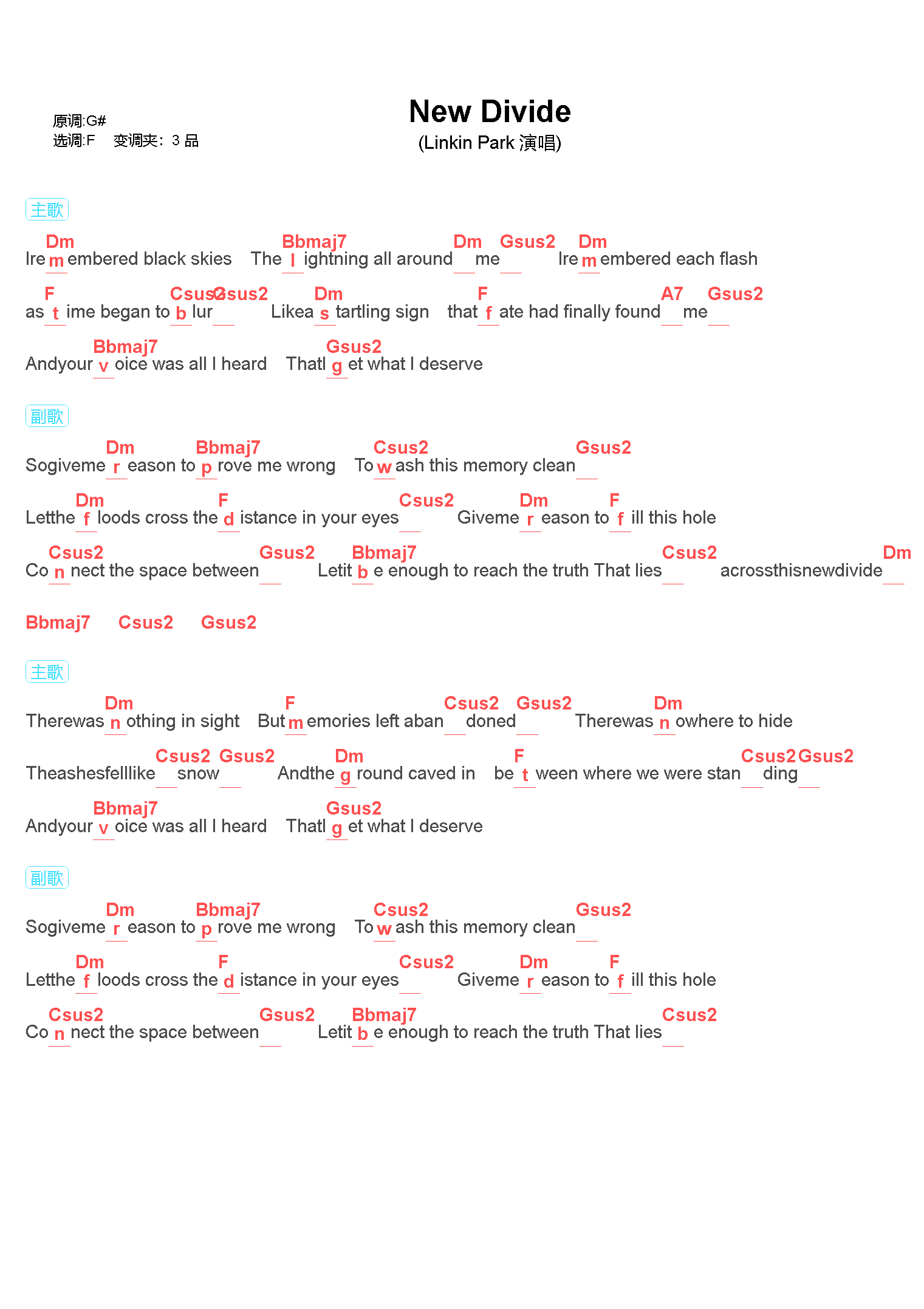 Linkin Park《New Divide》林肯公园_新界线_吉他谱