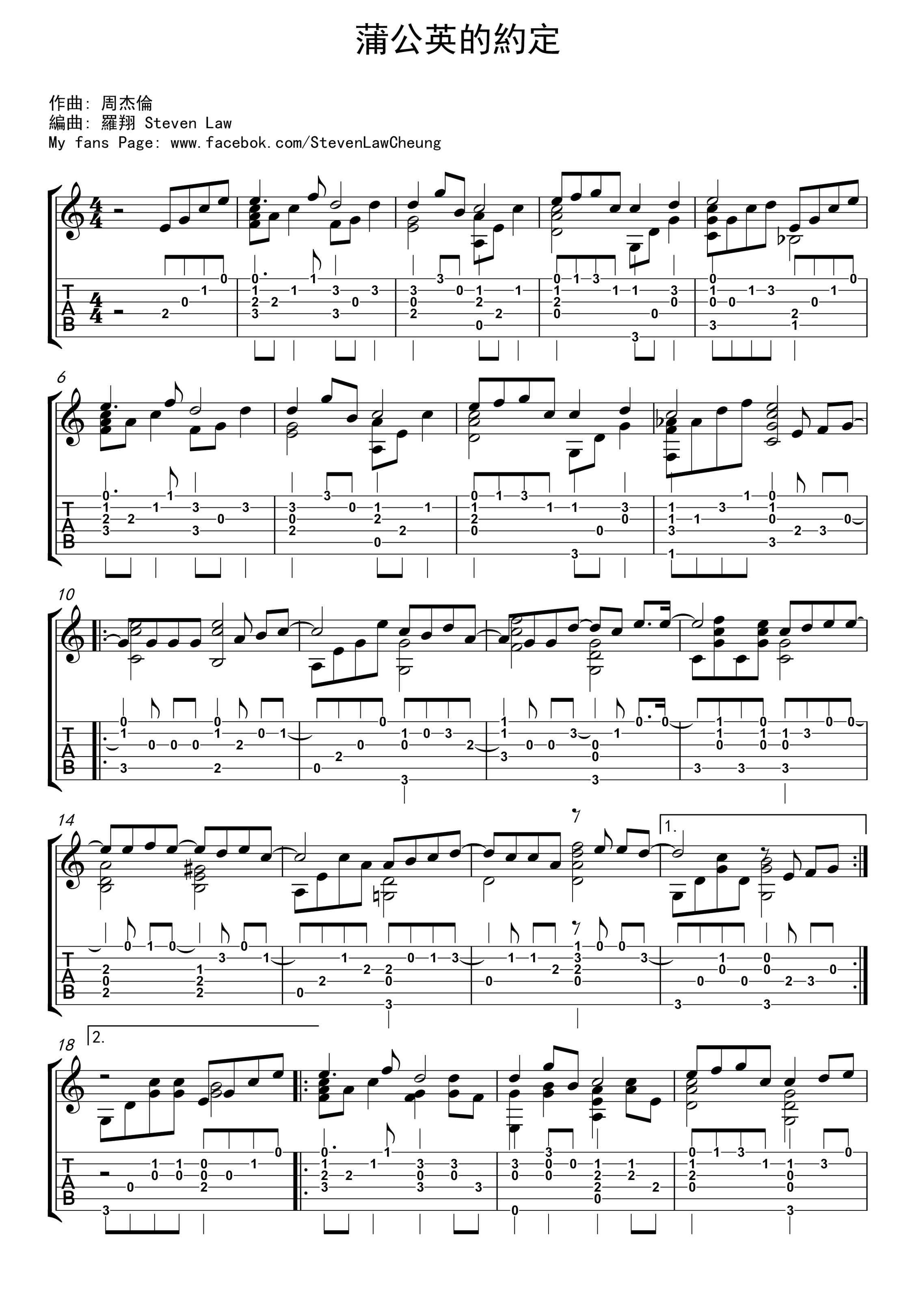 绝美演奏周杰伦《蒲公英的约定》标调示范附谱-吉他指弹
