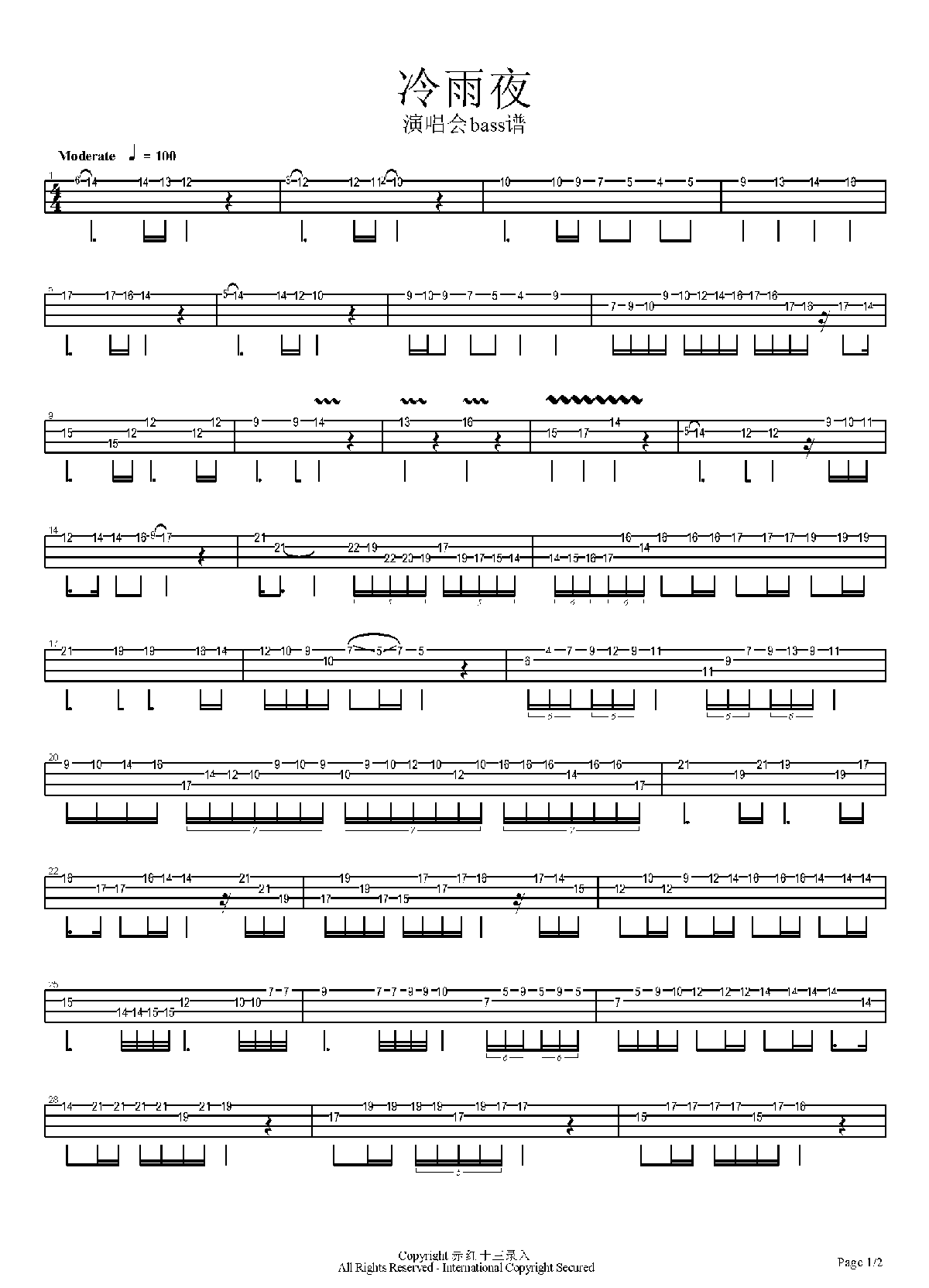 贝司乐谱【冷雨夜bass solo 应用谱】Bass谱 Beyond专辑《现代舞台》