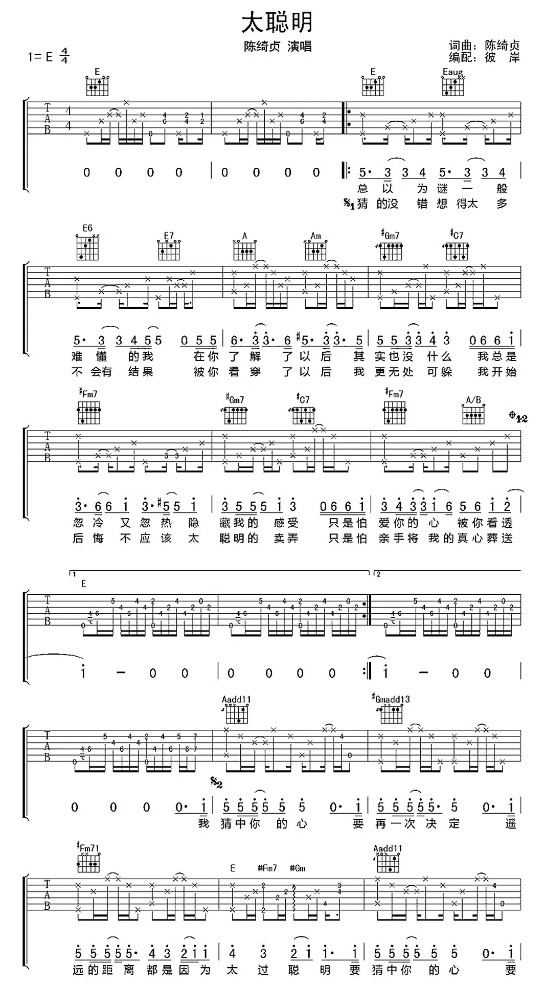 《太聪明》吉他谱_陈绮贞_E调原版弹唱谱 弹唱示范