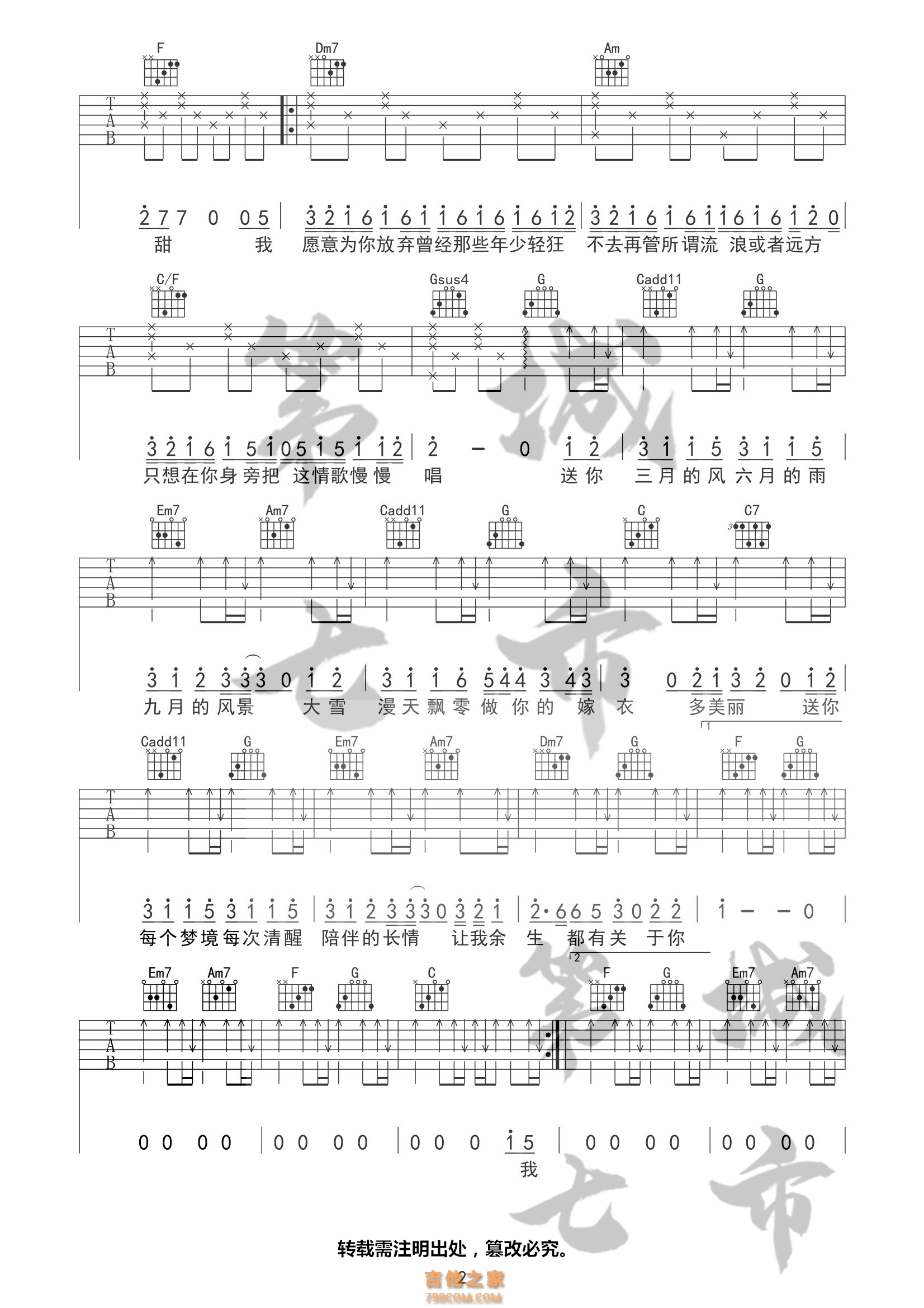 为你而来吉他谱_李健_G调扫弦版弹唱六线谱_高…