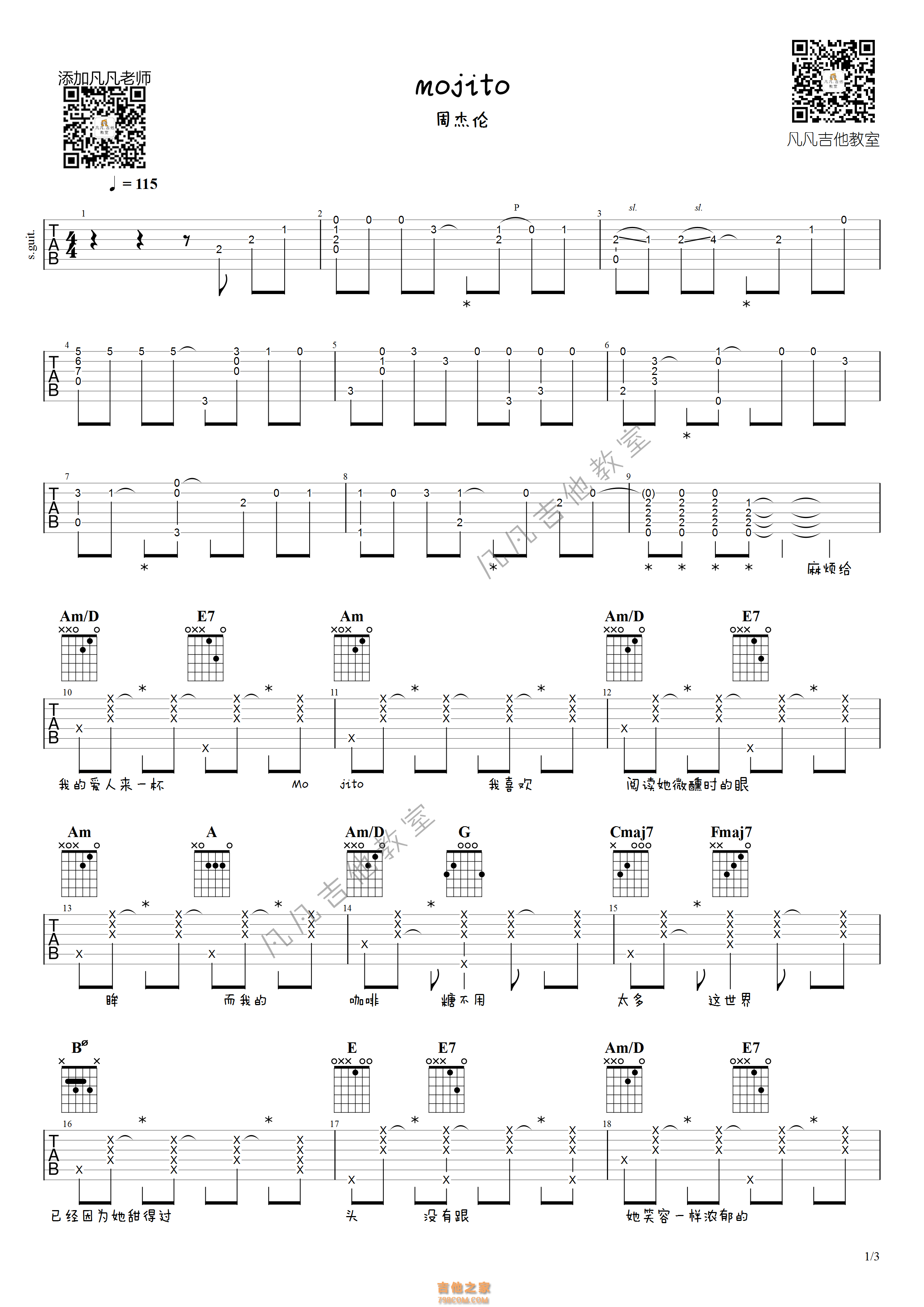 「Mojito」cover周杰伦,吉他弹唱。免费吉他谱 - 吉他谱