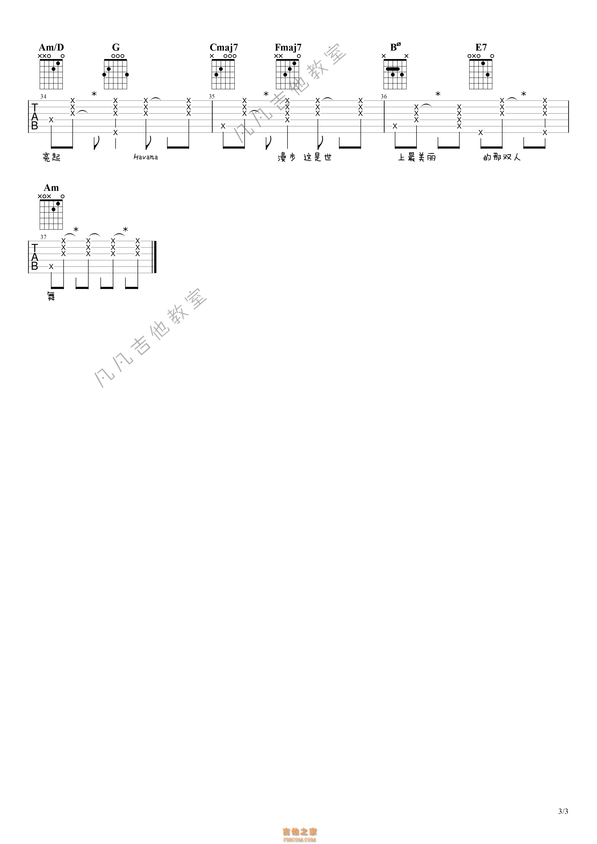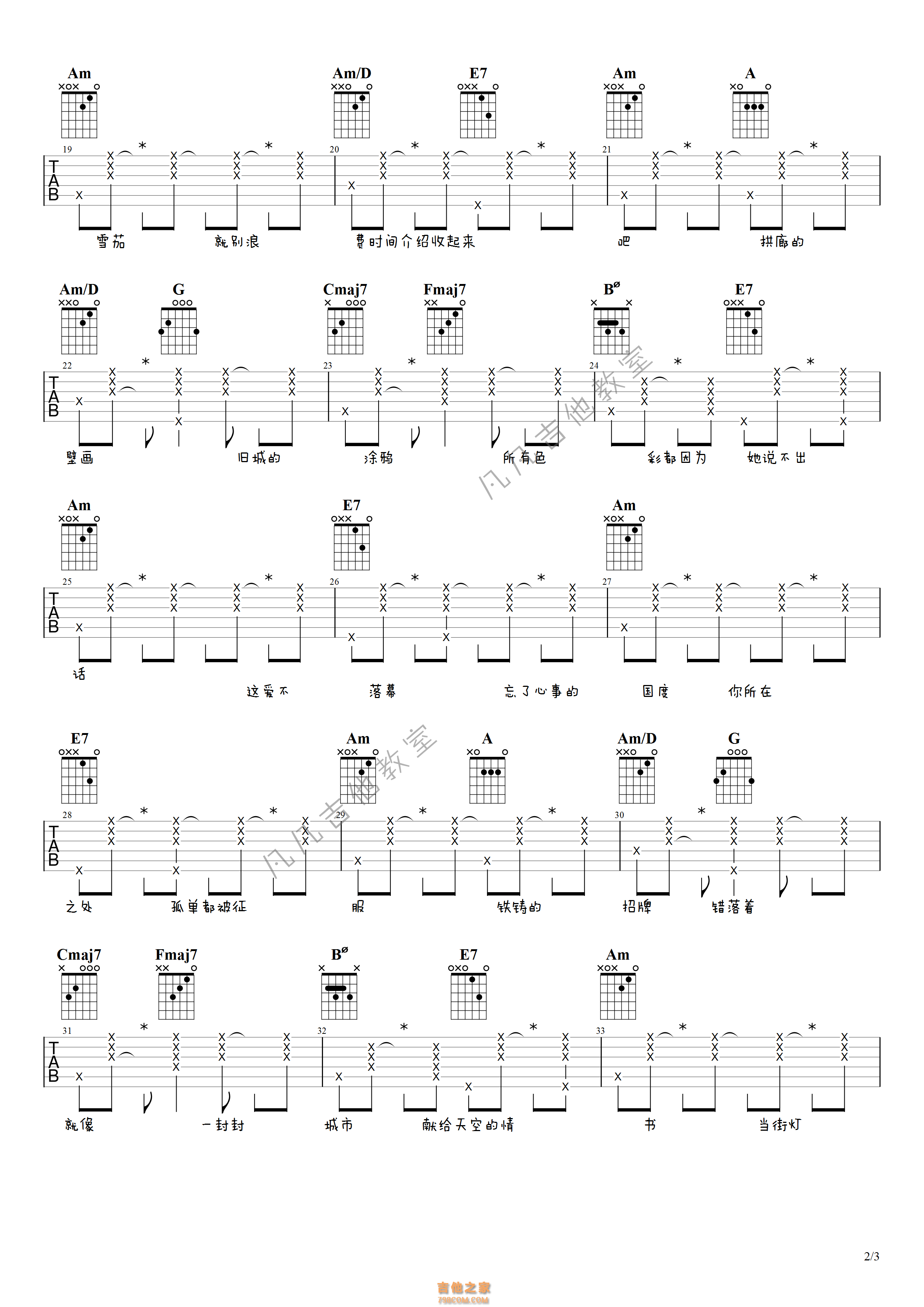 Casablanca卡萨布兰卡吉他谱_北非谍影 A调扫弦…