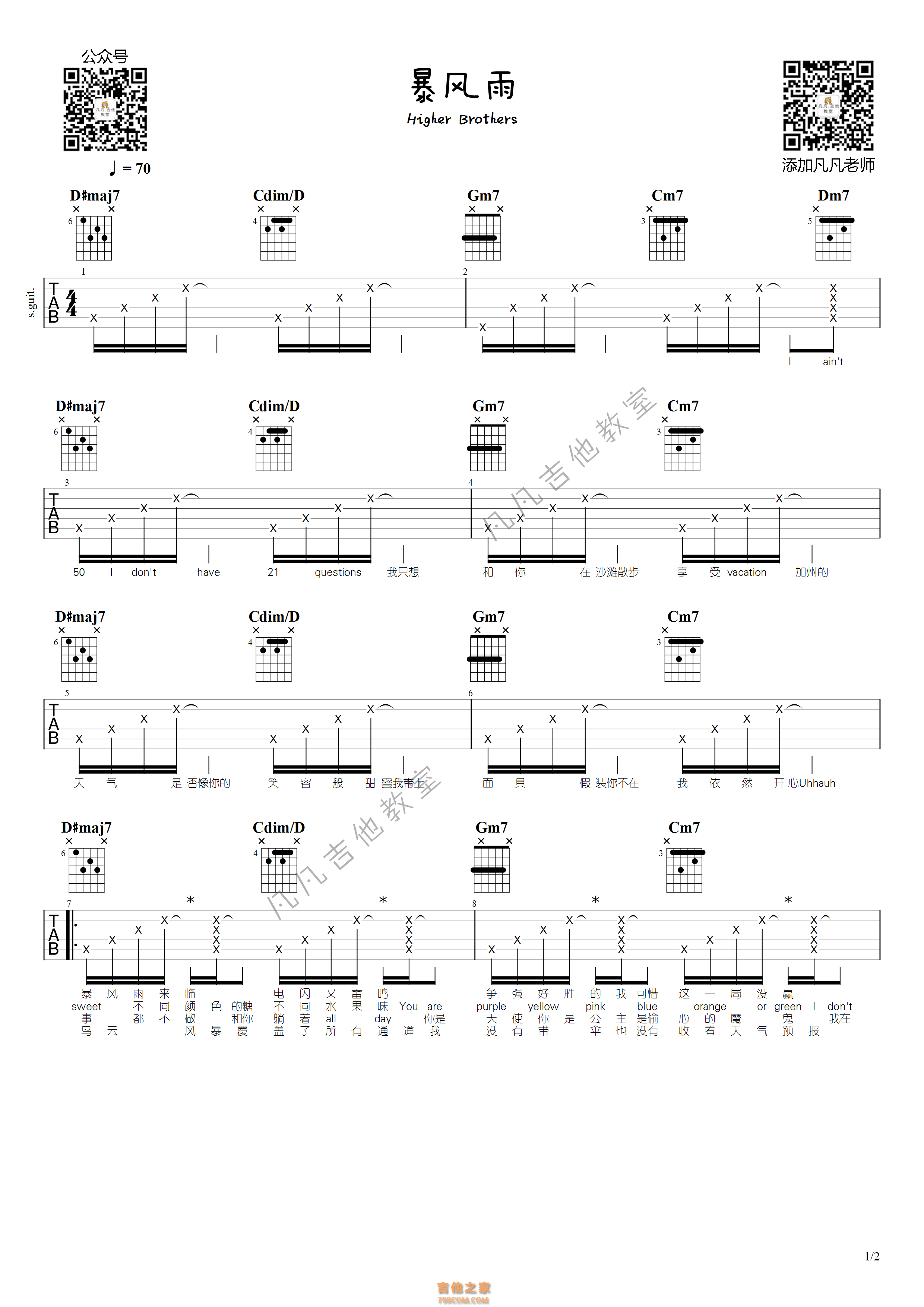 吉他Rap「暴风雨」Higher Brothers、马思唯,免费吉他谱,说唱嘻哈hiphop、爵士R&B/ne ... - 吉他谱