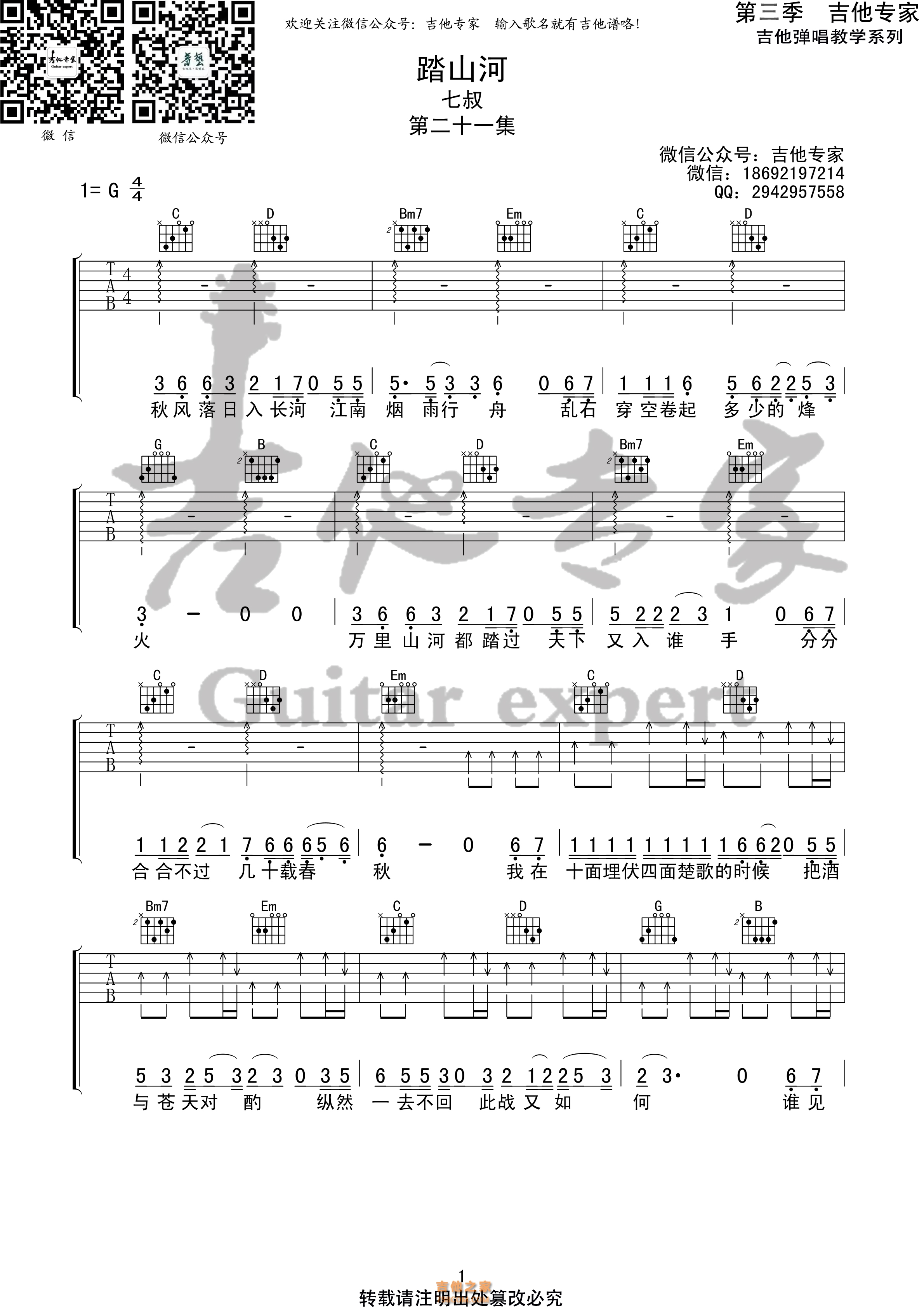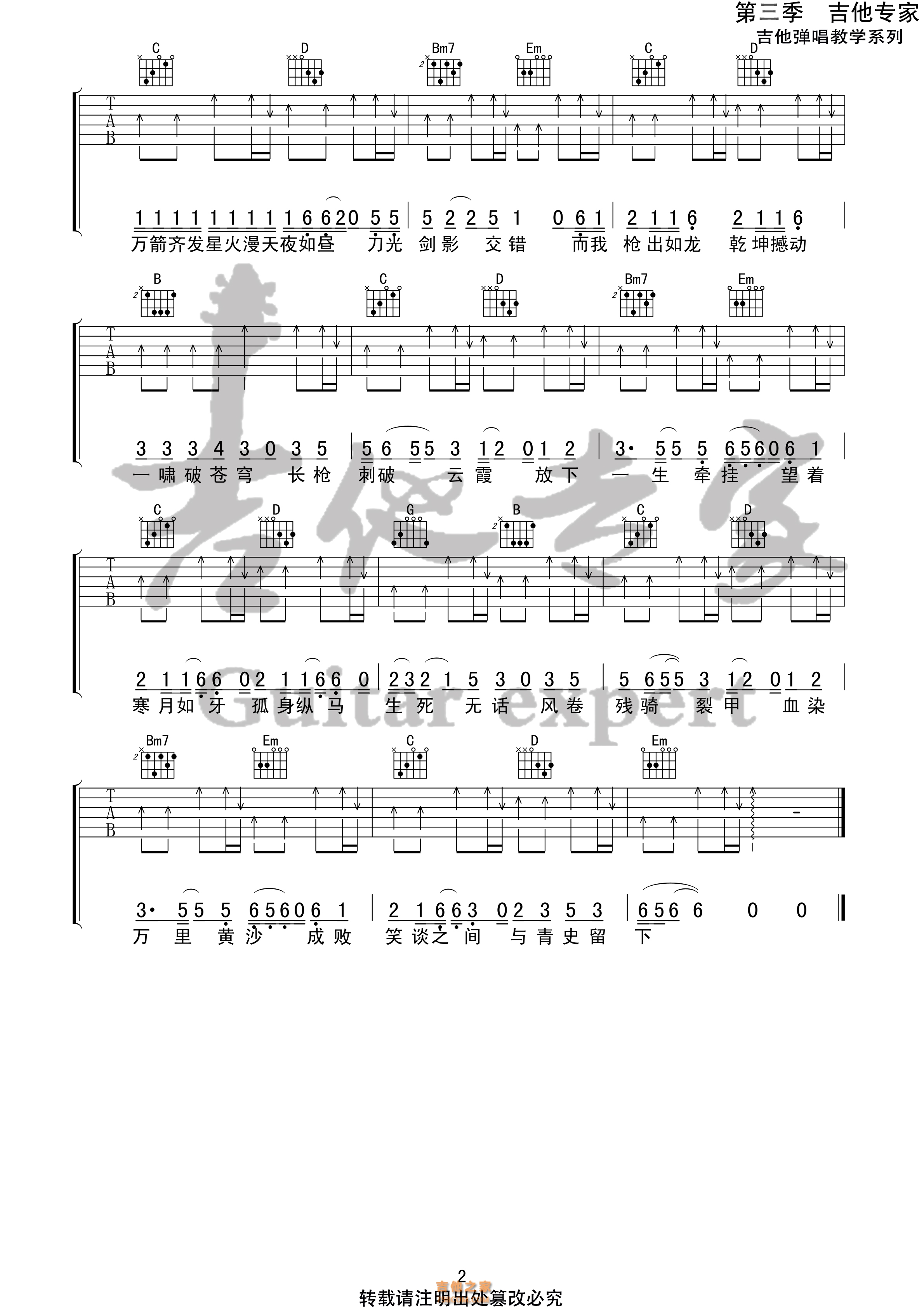 青花吉他谱_周传雄_G调扫弦版弹唱谱_图片六线谱