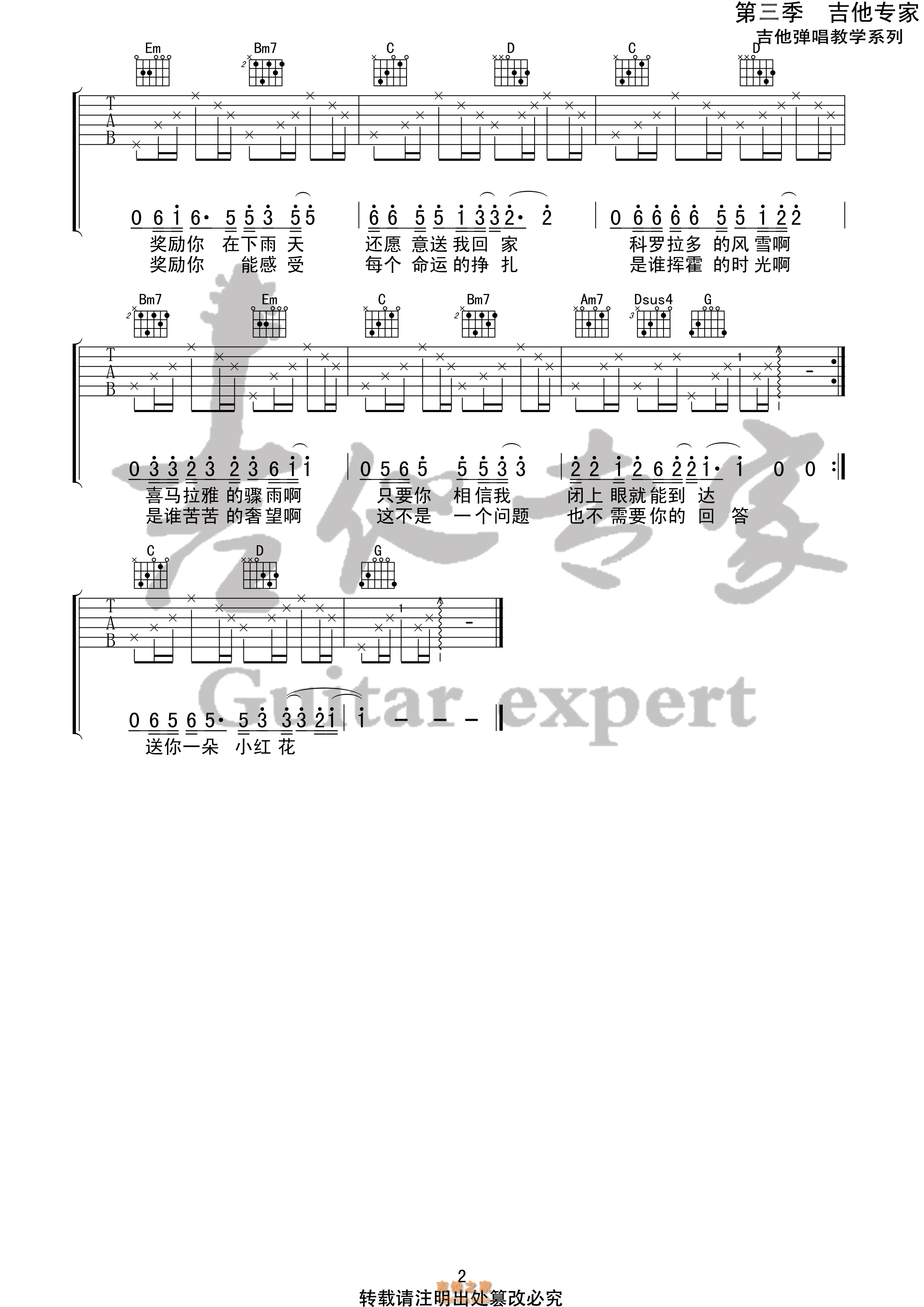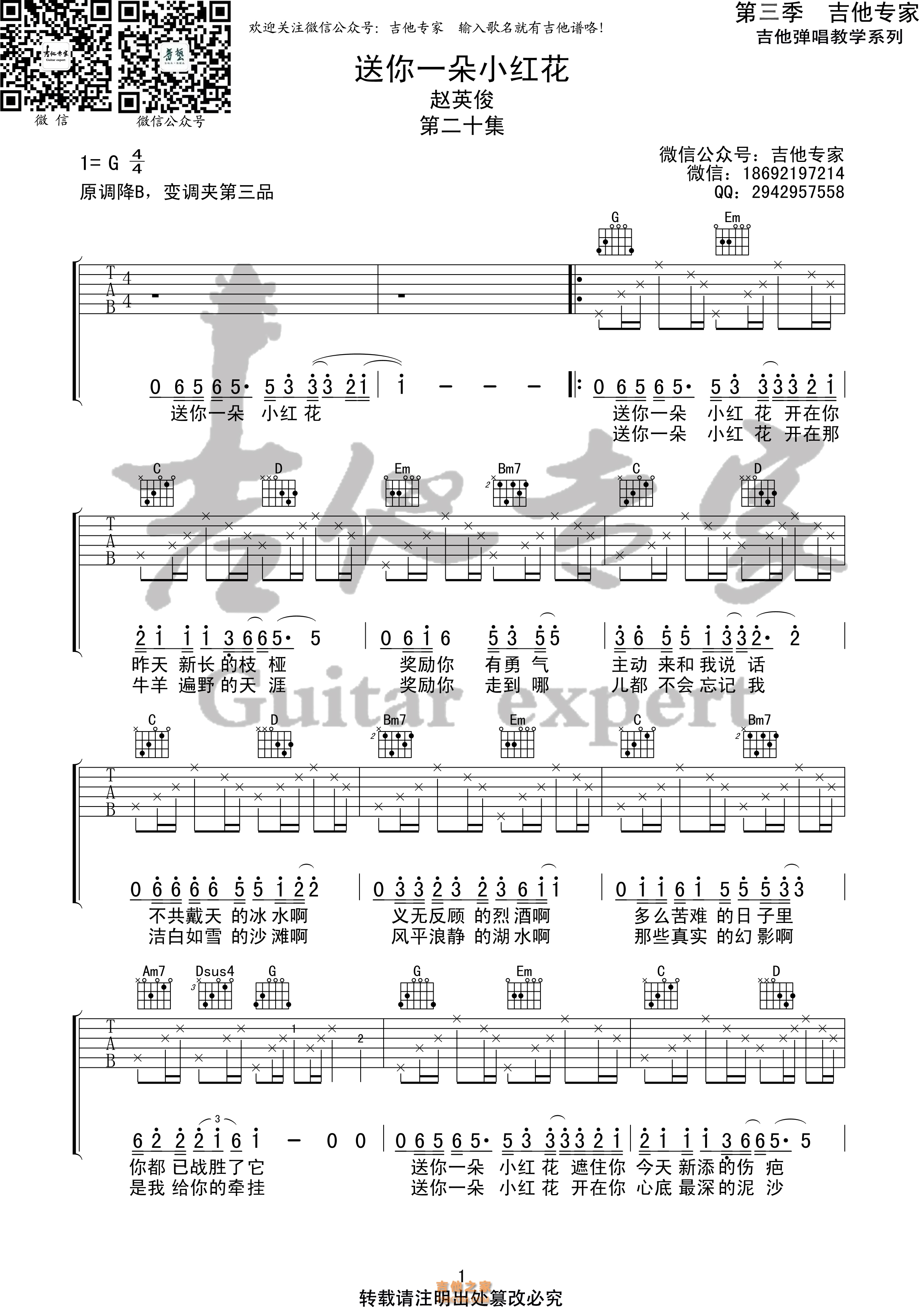 送你一朵小红花 原版吉他谱 - 吉他谱