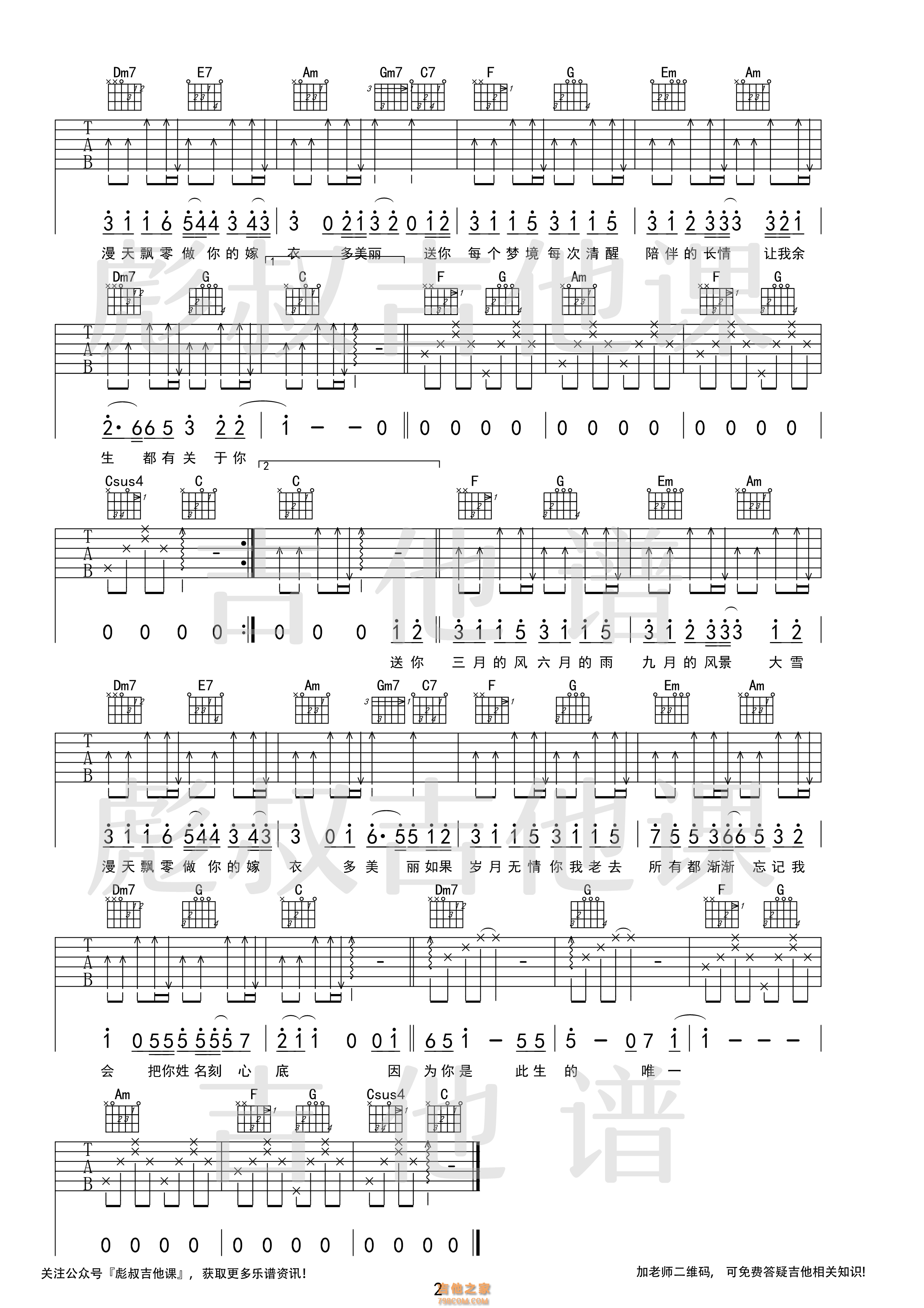 青花吉他谱_周传雄_G调扫弦版弹唱谱_图片六线谱
