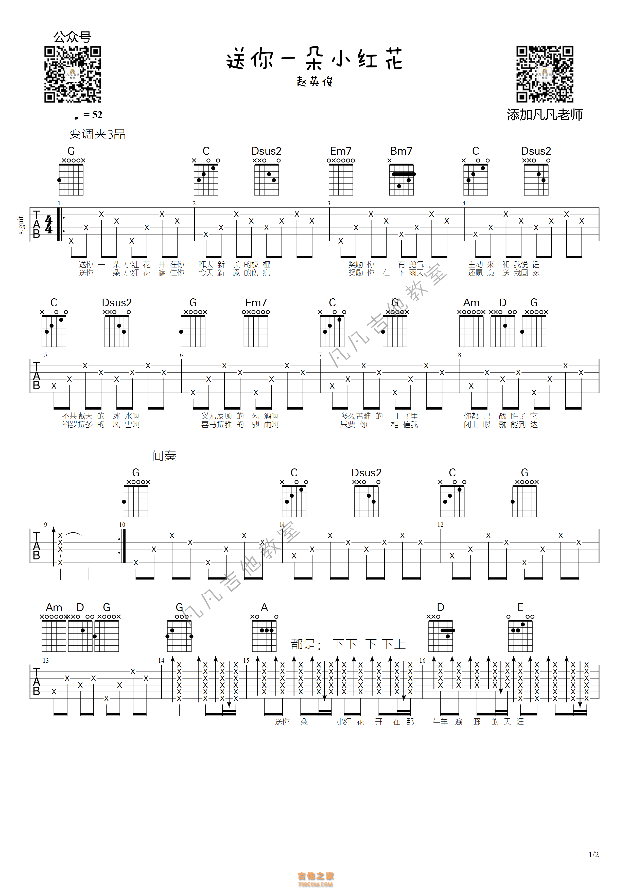 易烊千玺电影「送你一朵小红花」吉他弹唱,超感人,我是哭着唱完的。全网最完整、免费 ... - 吉他谱
