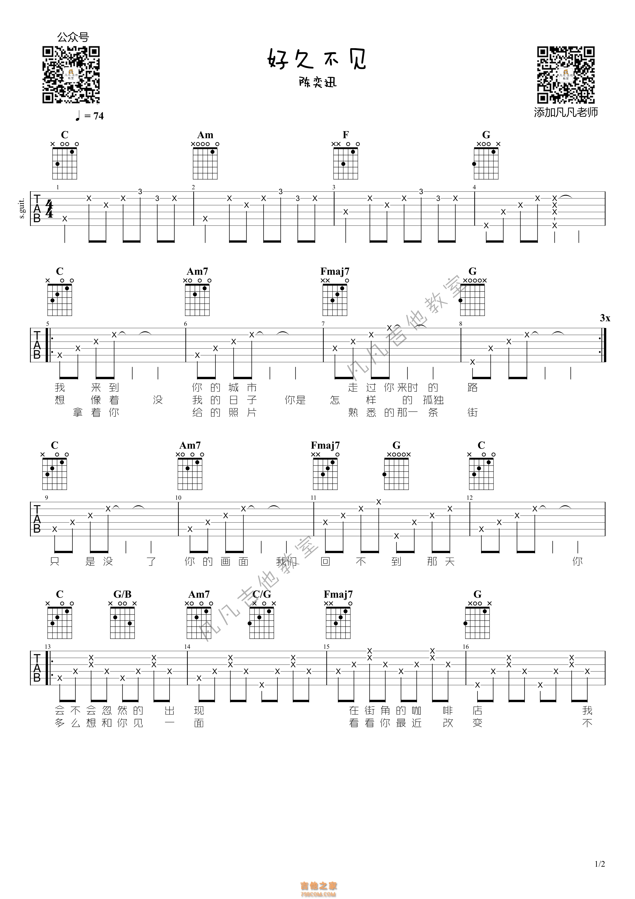陈奕迅「好久不见」吉他弹唱,「凡凡吉他编配」 - 吉他谱