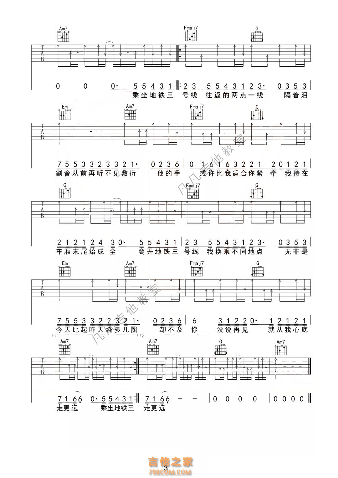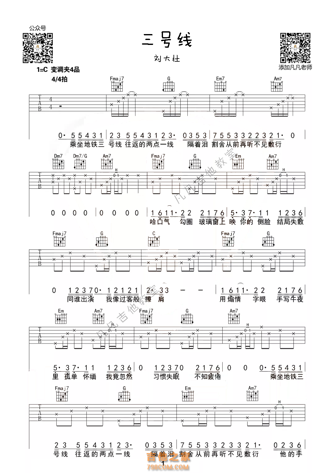 刘大壮「三号线」「凡凡吉他编配」 - 吉他谱