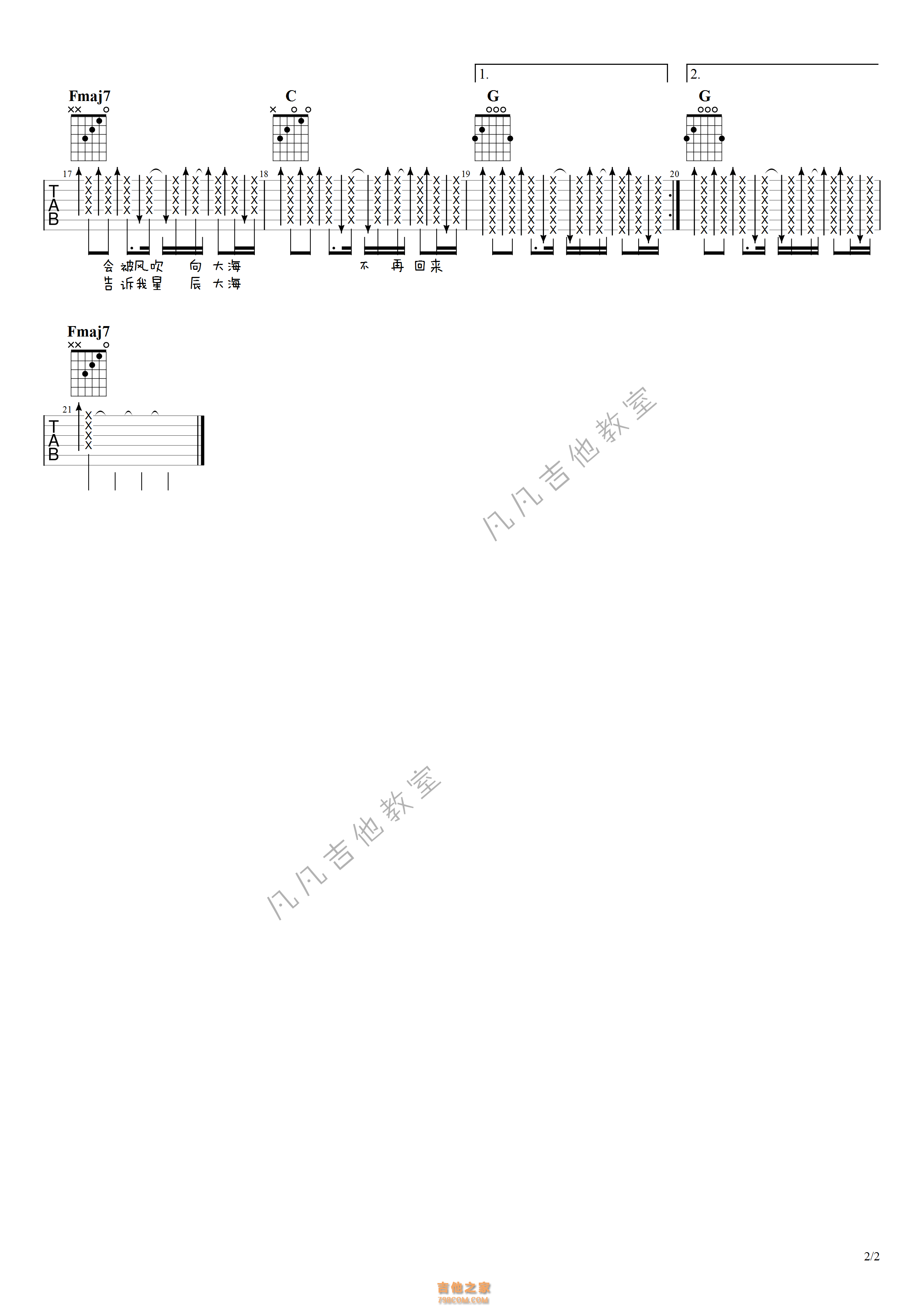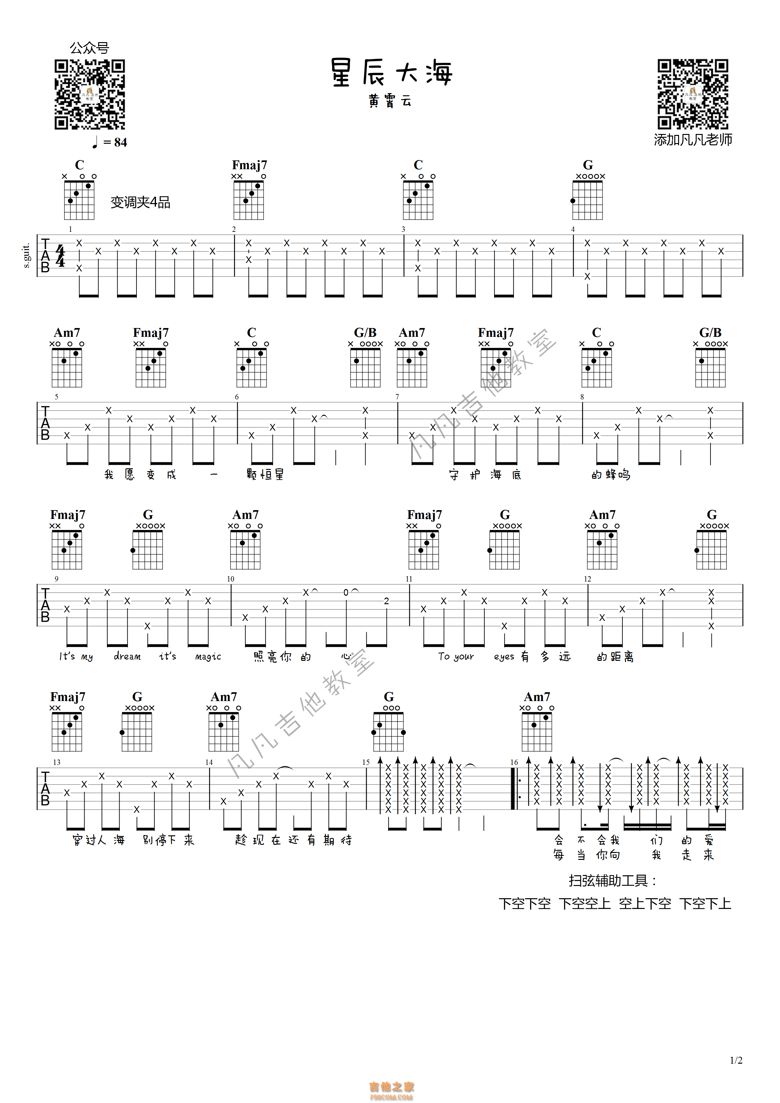 黄霄云「星辰大海」免费吉他谱「凡凡吉他编配」 - 吉他谱