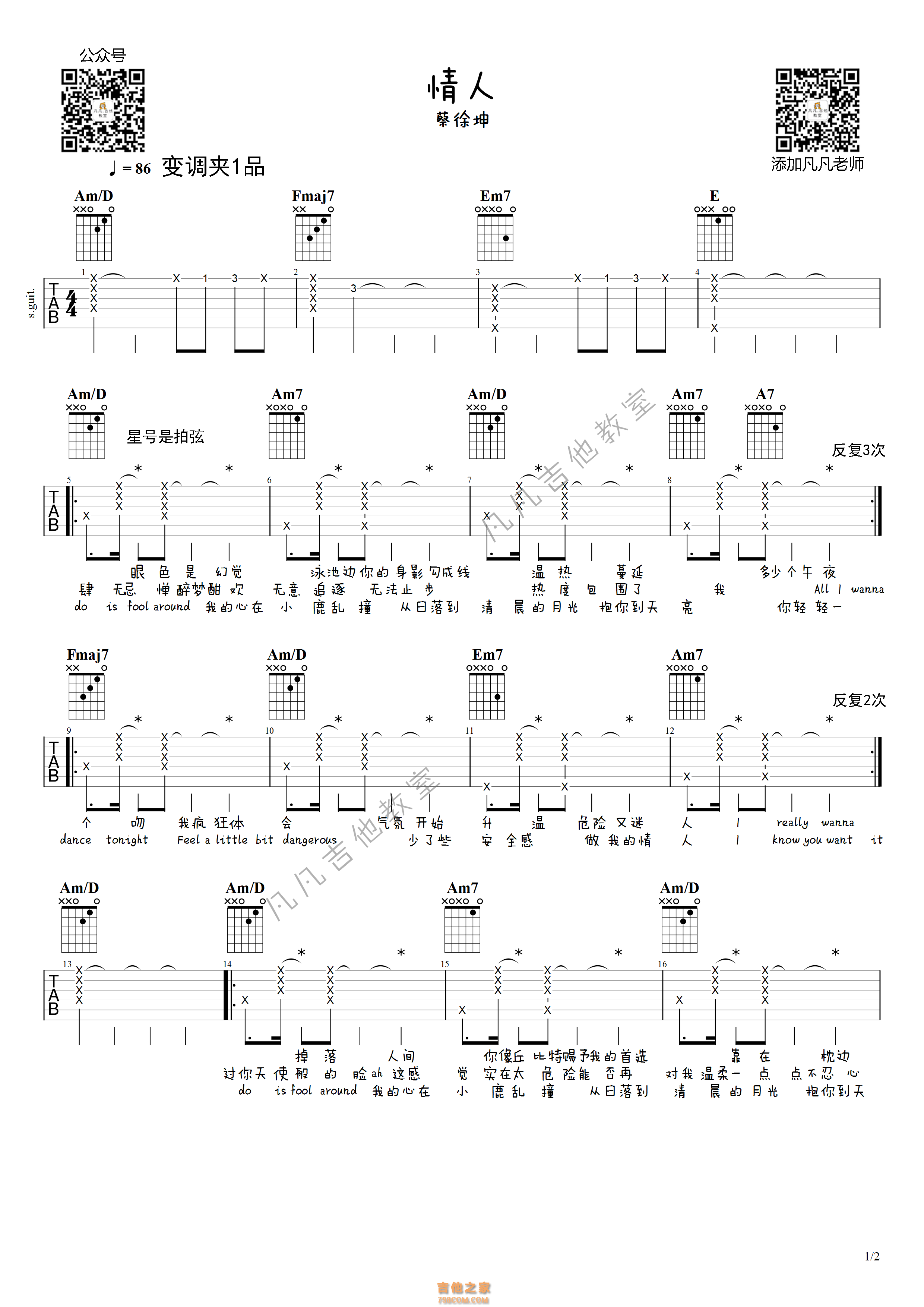蔡徐坤「情人」「凡凡吉他编配」 - 吉他谱