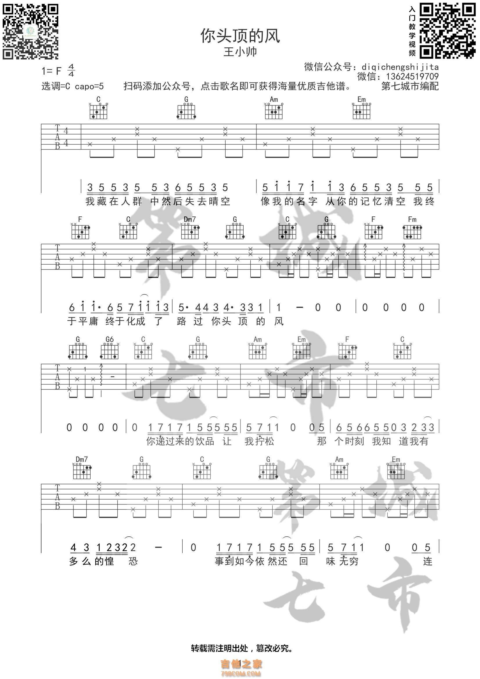 Live-House吉他谱,歌曲原调为#F调,此版本的曲谱来源于@濮宇,为4/4拍的节奏,按G调指法编配,共1张高清吉他谱,变调夹降半音调弦为原歌曲的调式,演唱时可按个人音域选择合适的变调夹位置。