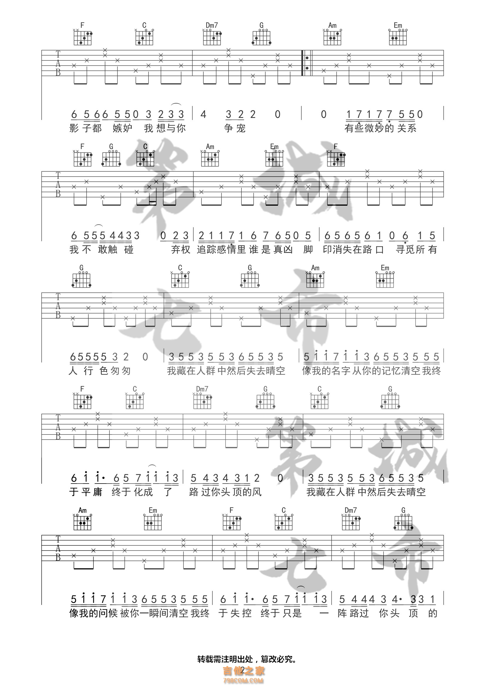 街角的晚风吉他谱,歌曲原调为降B调,此版本的曲谱来源于@网络转载,为4/4拍的节奏,按G调指法编配,共2张高清吉他谱,变调夹3品为原歌曲的调式,演唱时可按个人音域选择合适的变调夹位置。 歌曲表达了对逝去爱情的不舍与矛盾,想靠近回忆又怕受伤,藏着爱而不得的… -