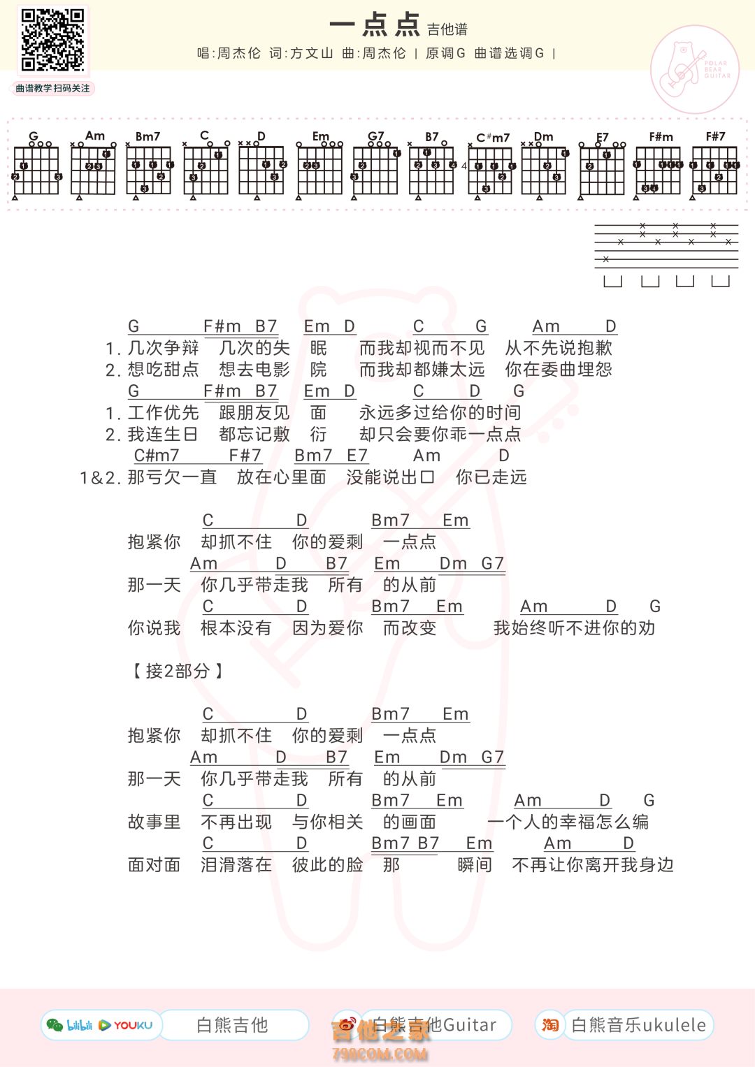周杰伦《一点点》吉他弹唱谱 白熊音乐 - 吉他谱