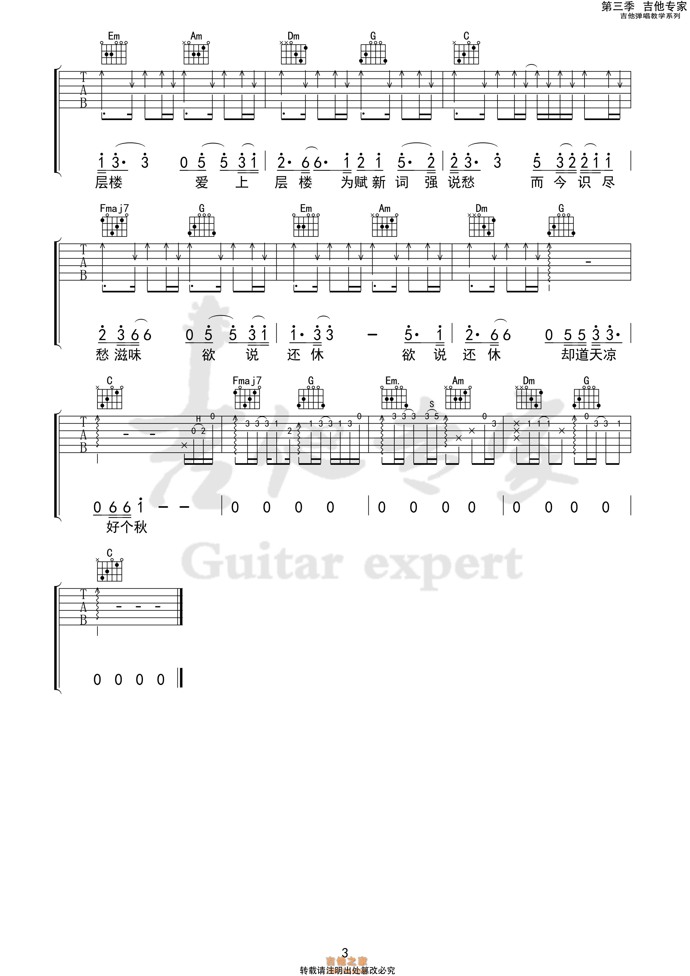 青花吉他谱_周传雄_G调扫弦版弹唱谱_图片六线谱