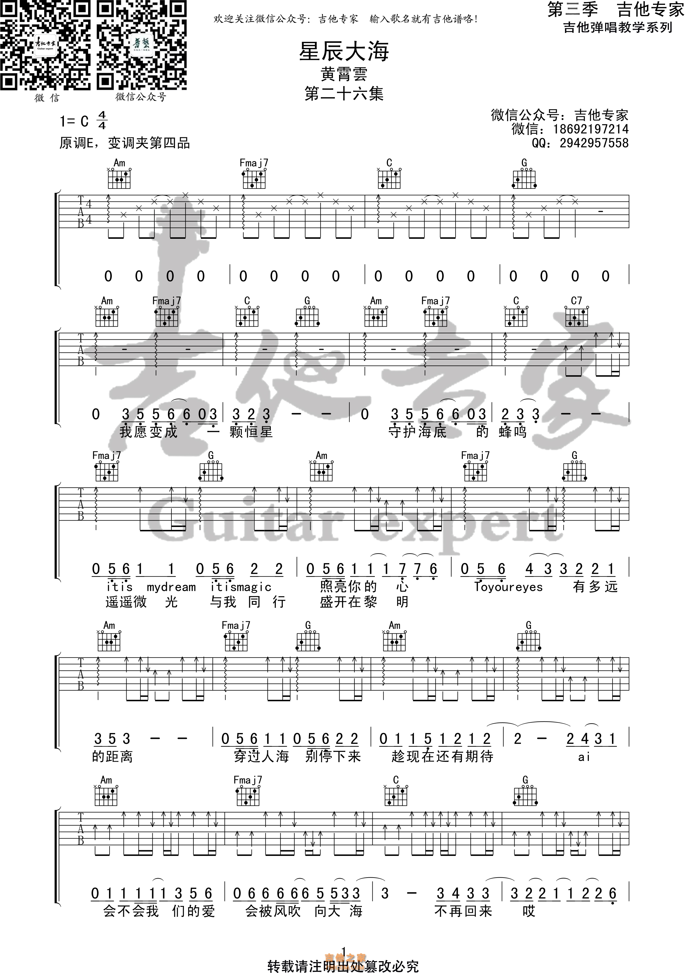 Live-House吉他谱,歌曲原调为#F调,此版本的曲谱来源于@濮宇,为4/4拍的节奏,按G调指法编配,共1张高清吉他谱,变调夹降半音调弦为原歌曲的调式,演唱时可按个人音域选择合适的变调夹位置。