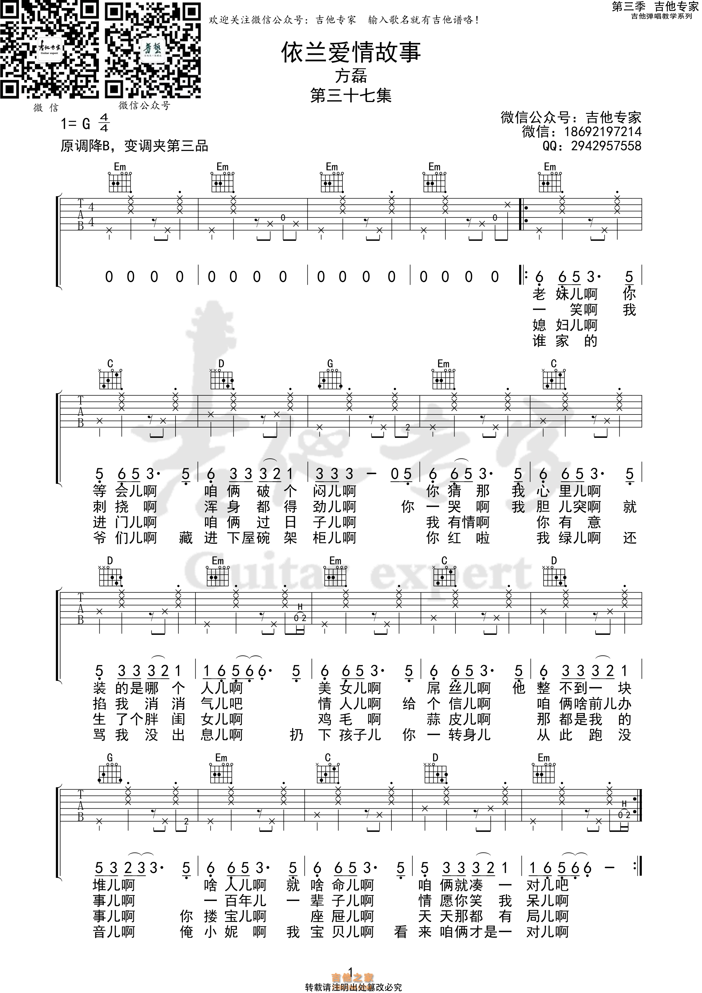 依兰爱情故事 原版吉他谱 - 吉他谱