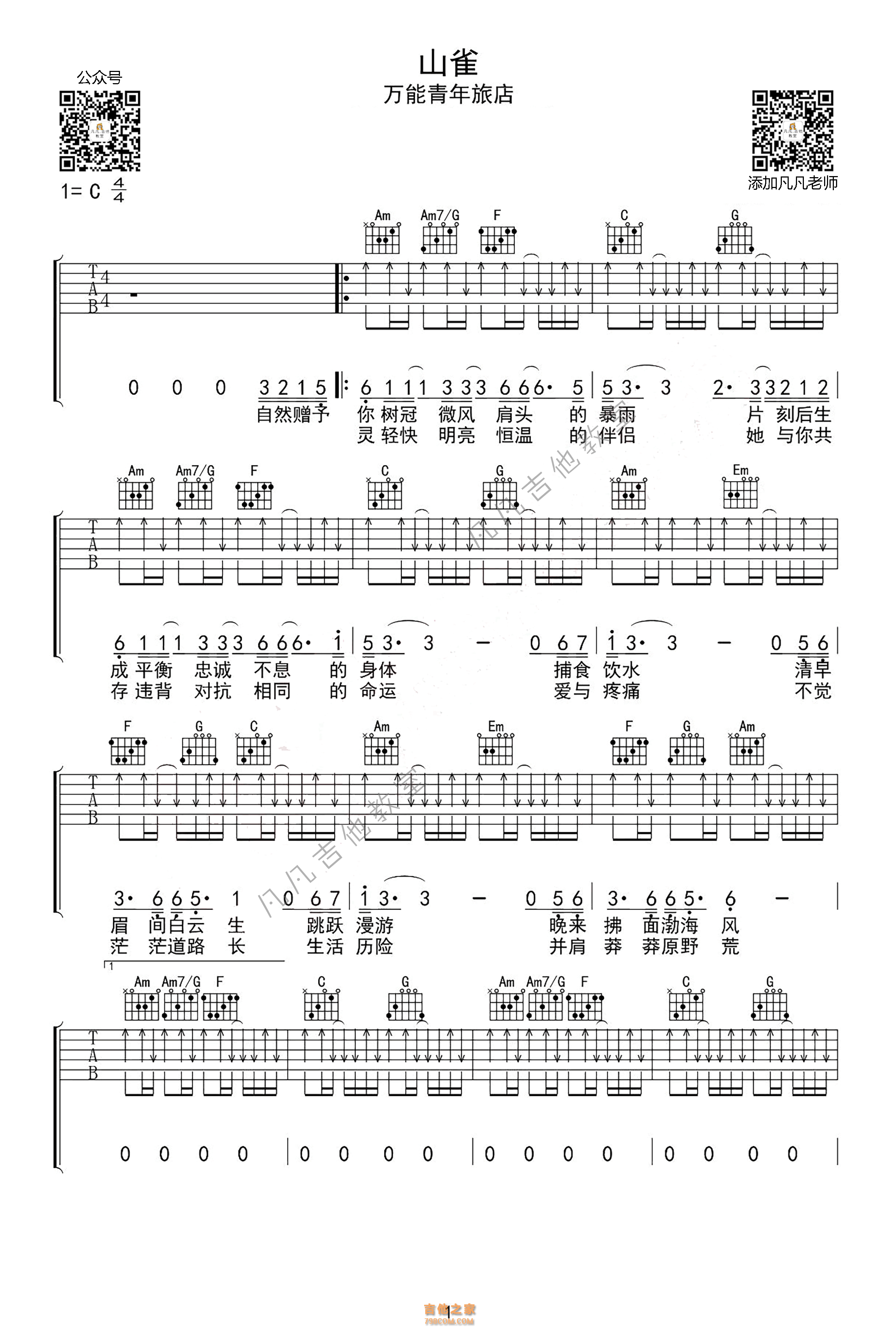 山雀,万能青年旅店(凡凡吉他编配) - 吉他谱