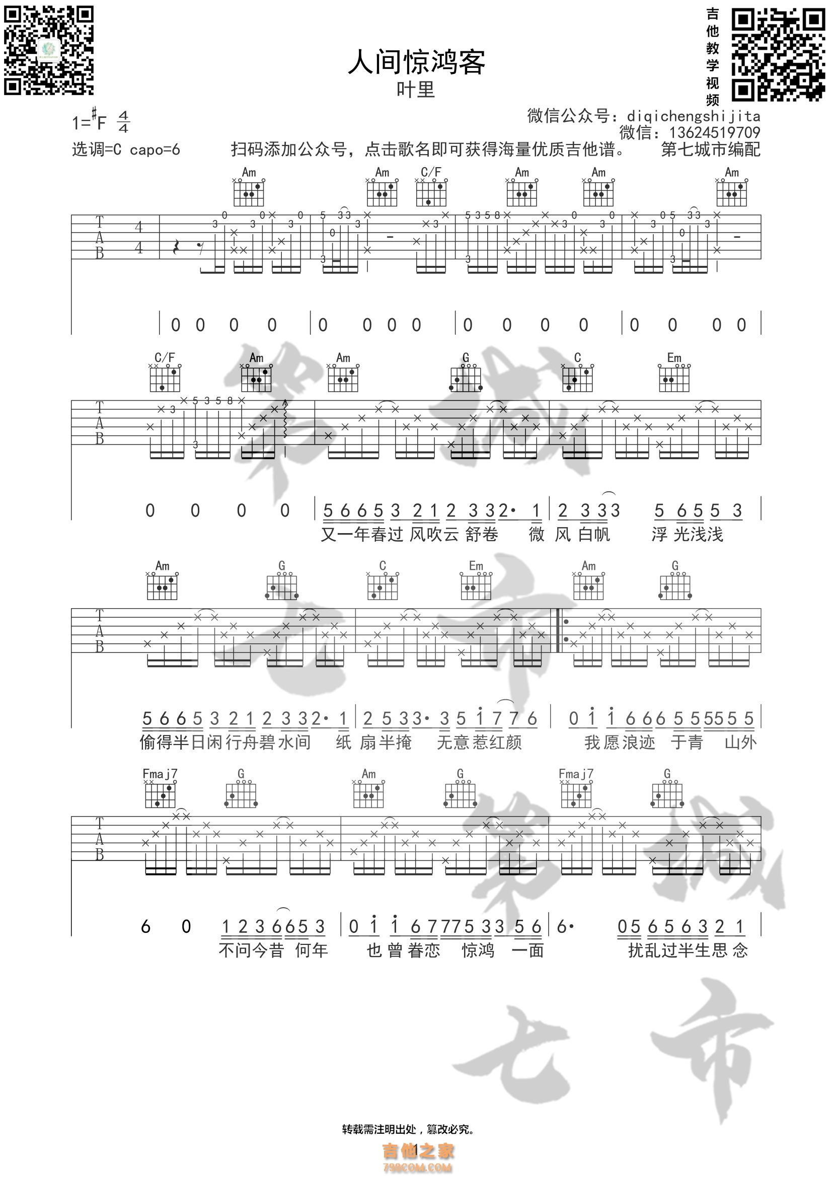 人间惊鸿客 吉他谱 叶里 - 吉他谱