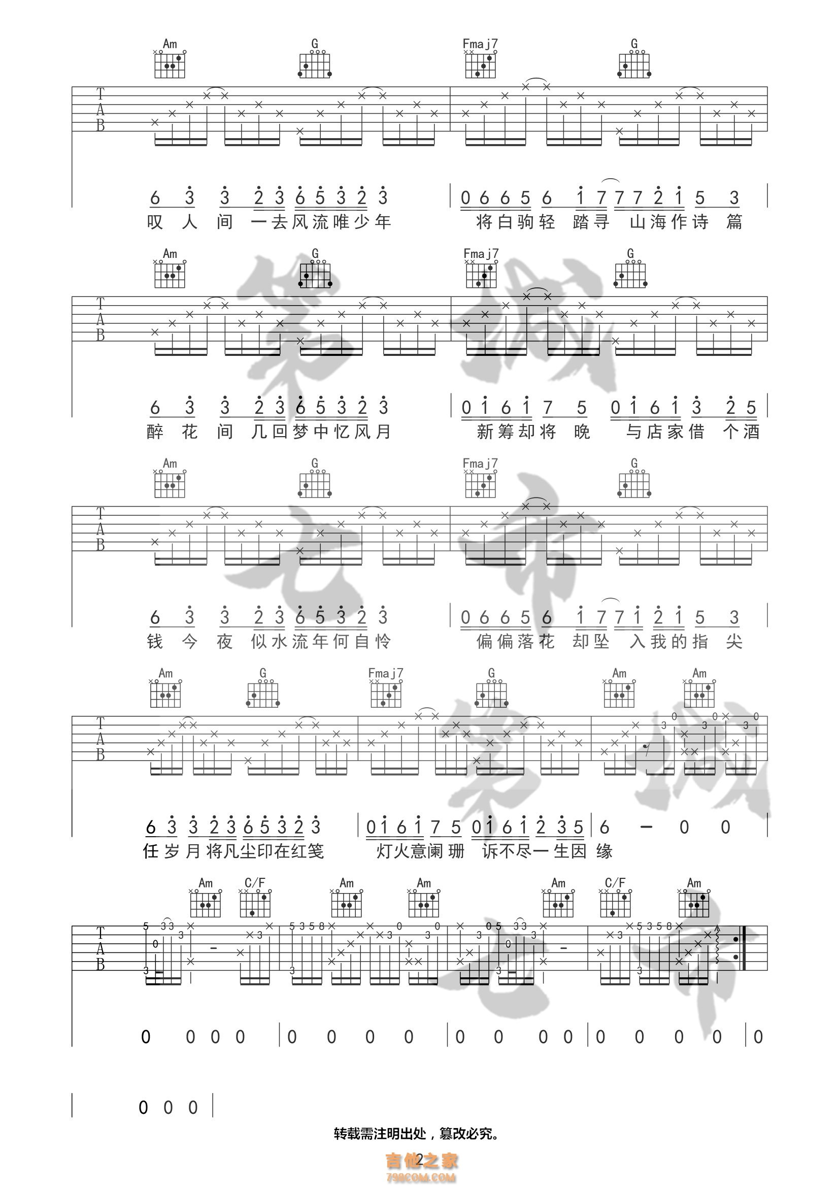 青花吉他谱_周传雄_G调扫弦版弹唱谱_图片六线谱