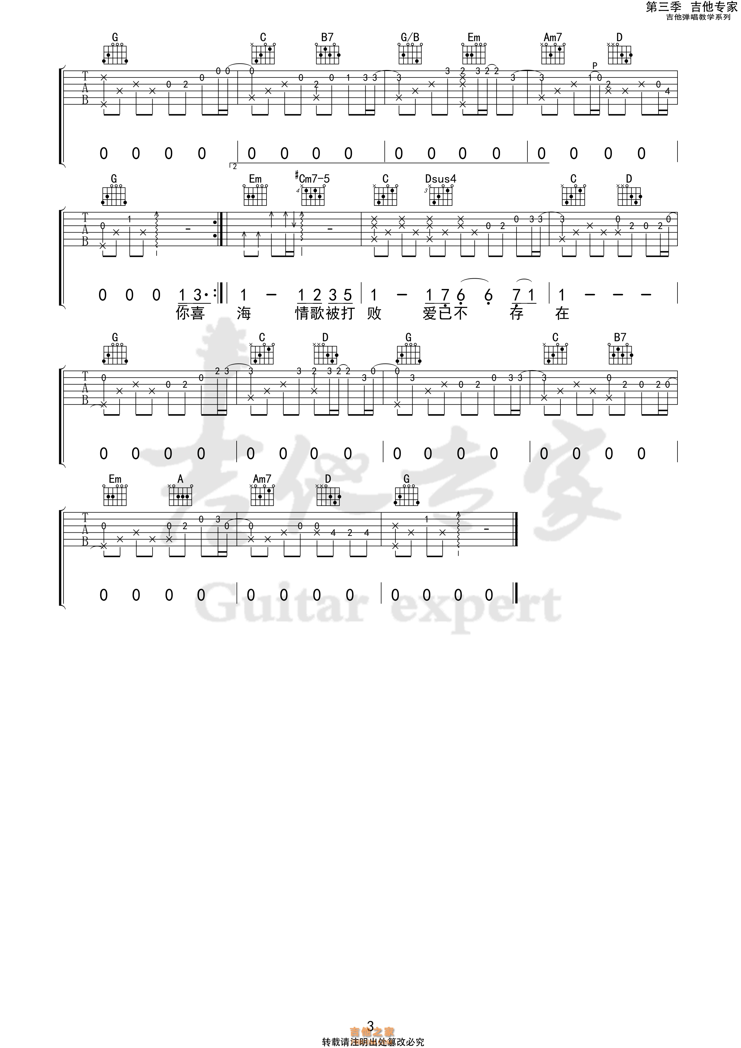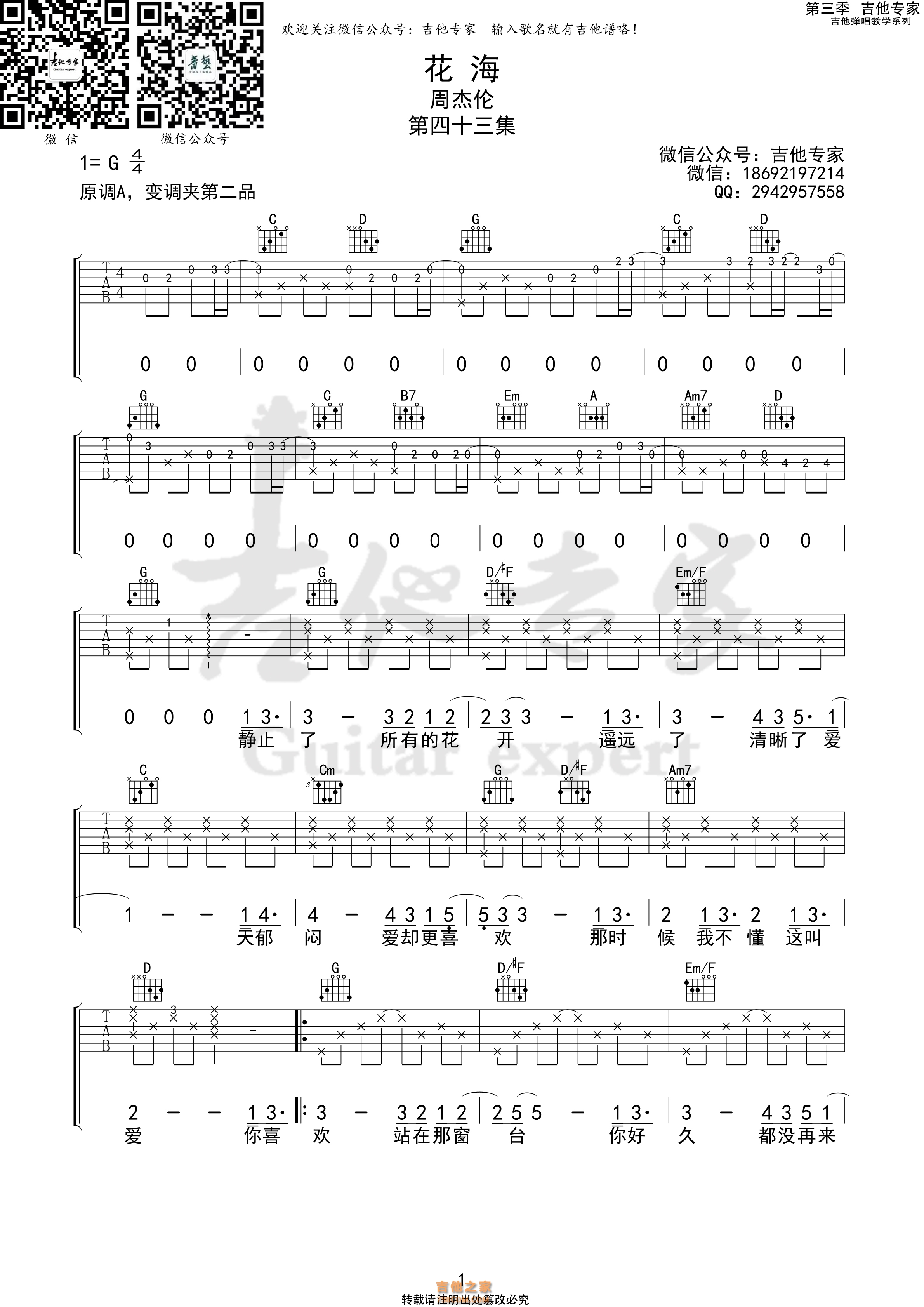 青花吉他谱_周传雄_G调扫弦版弹唱谱_图片六线谱