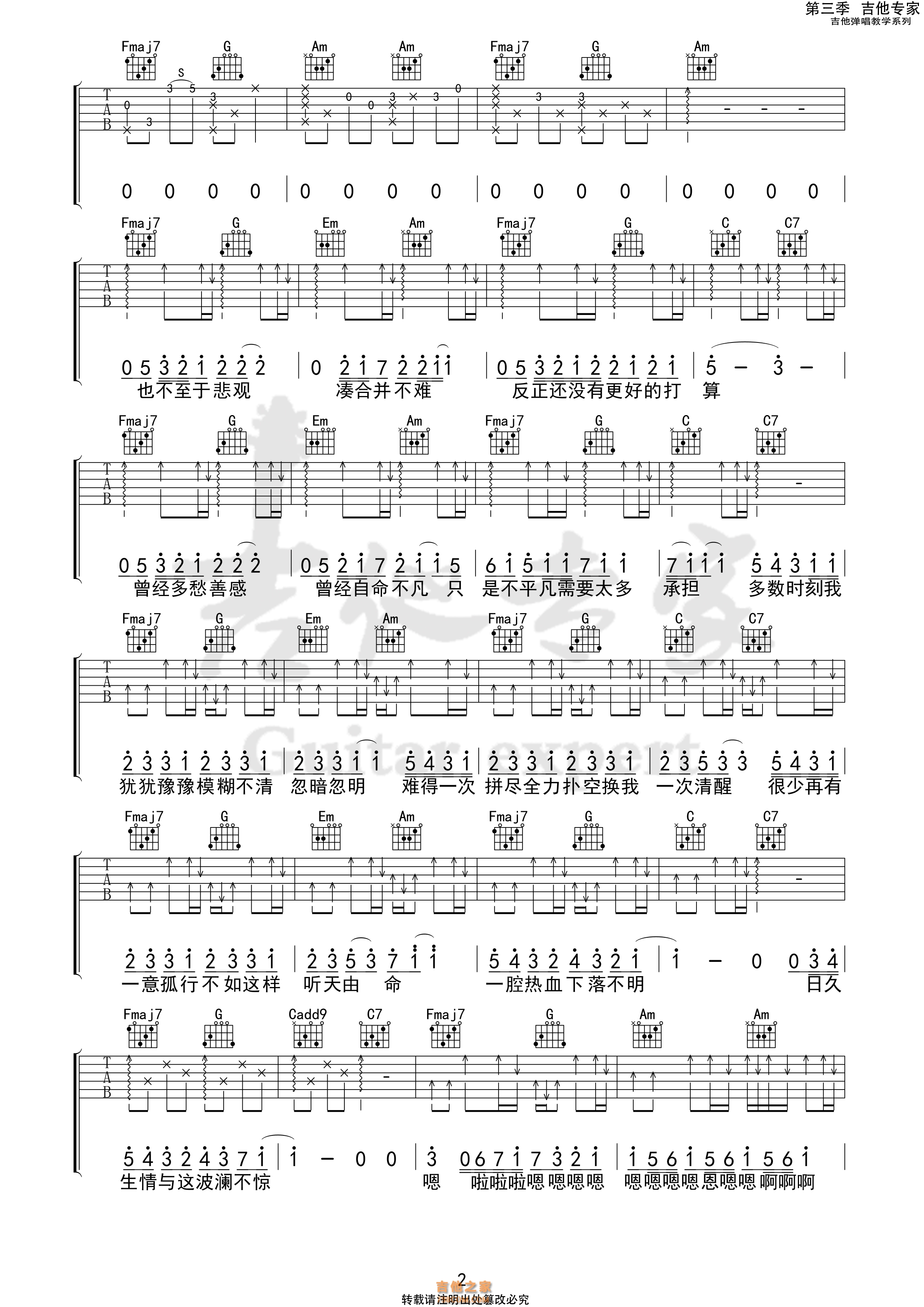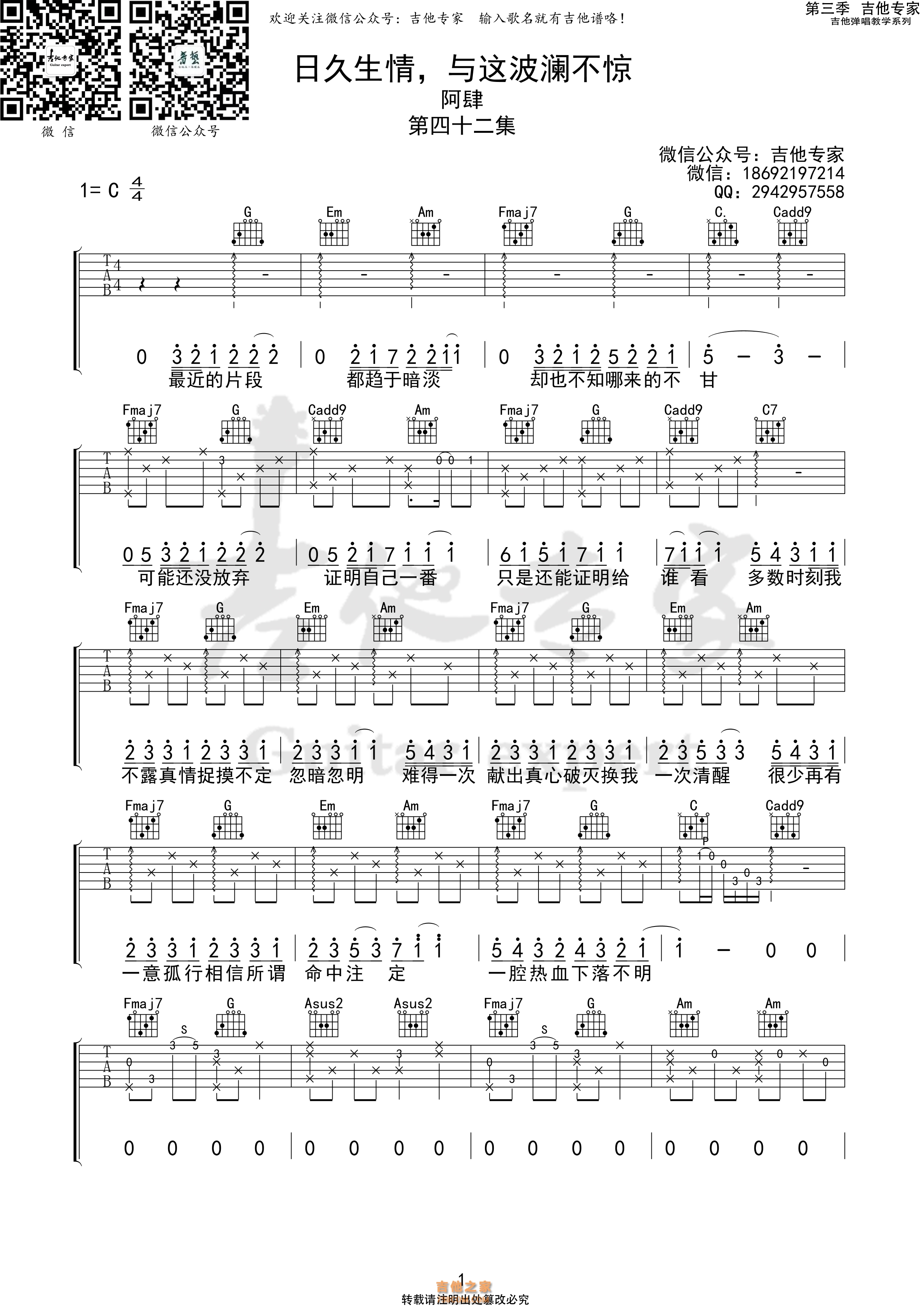 日久生情,与这波澜不惊 原版吉他谱 - 吉他谱