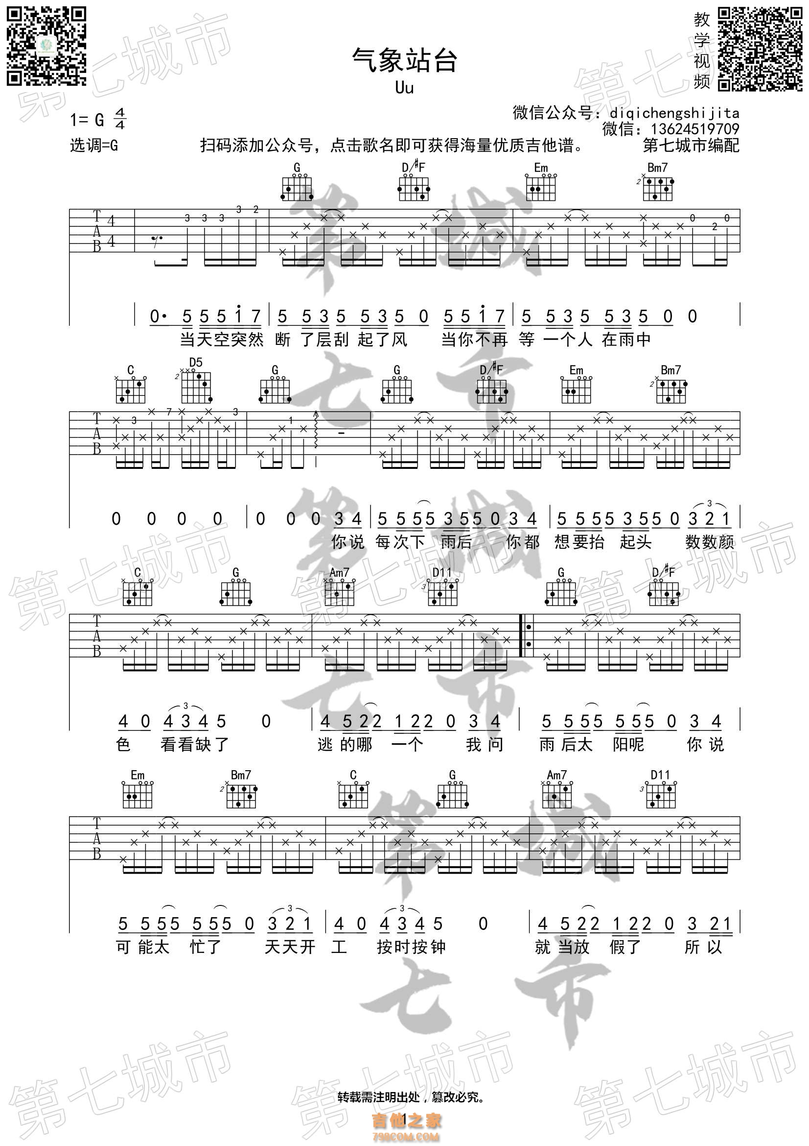 气象站台 吉他谱 Uu 第七城市编配 - 吉他谱