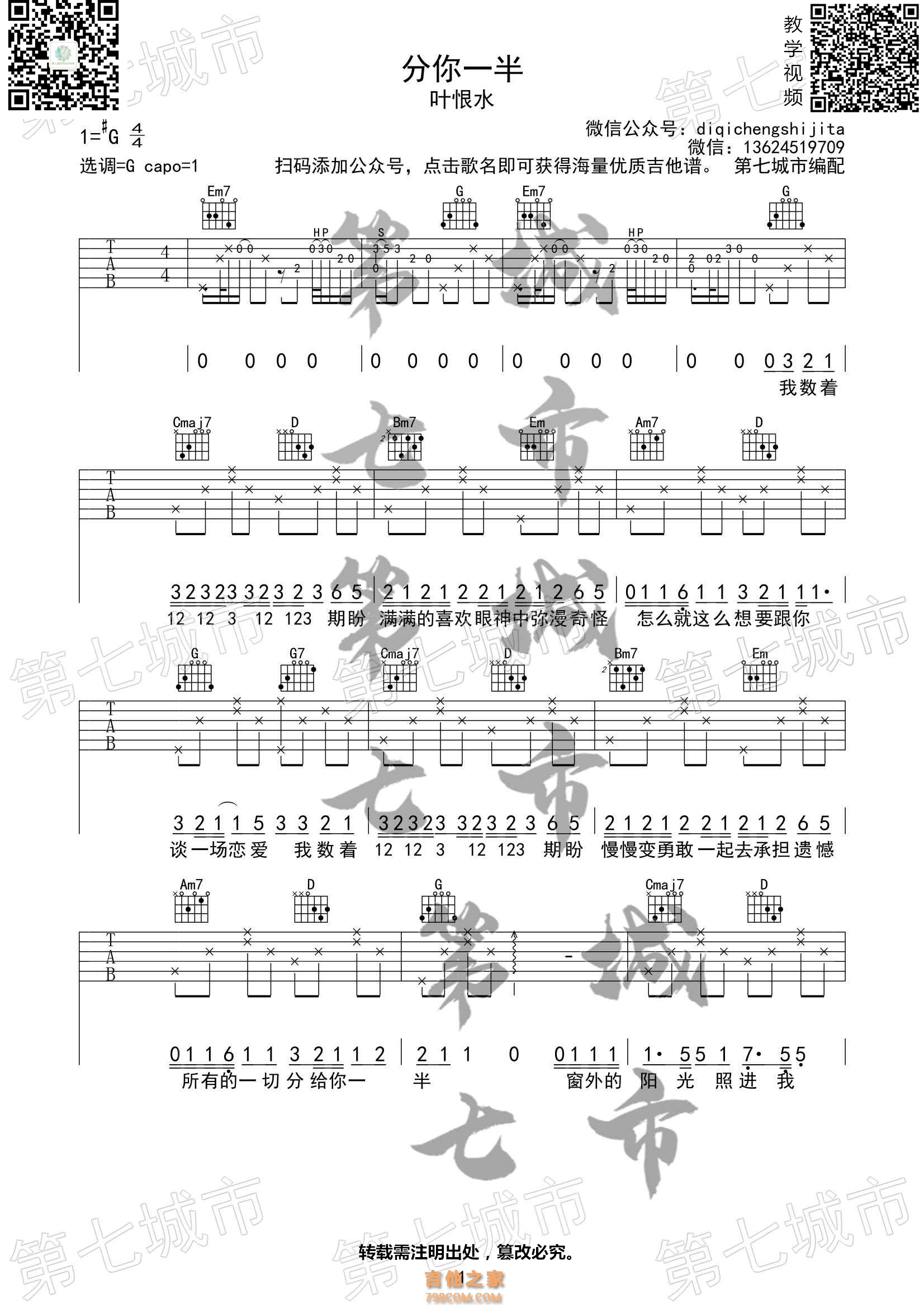 分你一半吉他谱叶恨水 第7城市guitar - 吉他谱