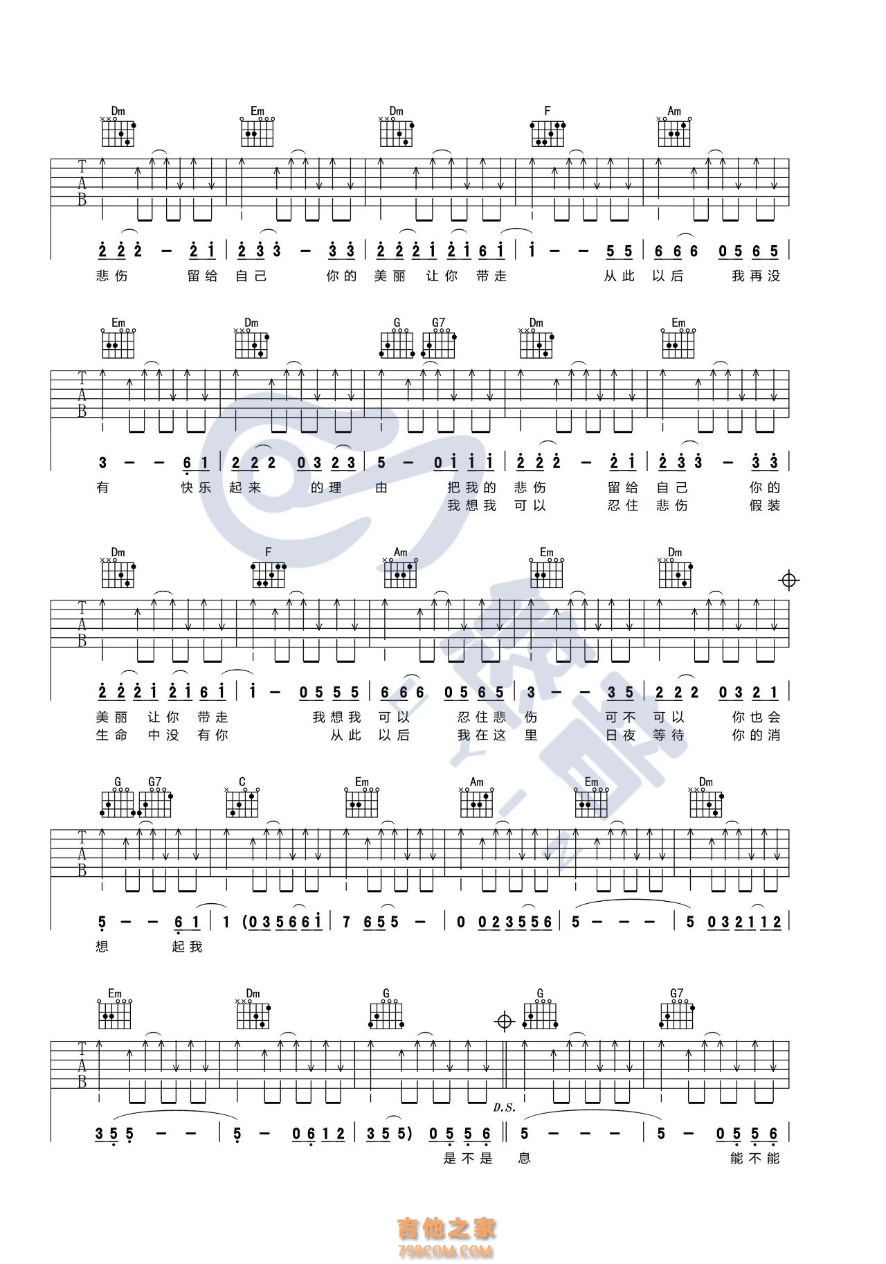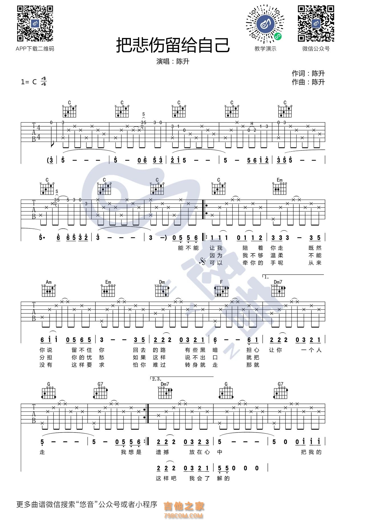 陈升 把悲伤留给自己 吉他谱 悠音 - 吉他谱