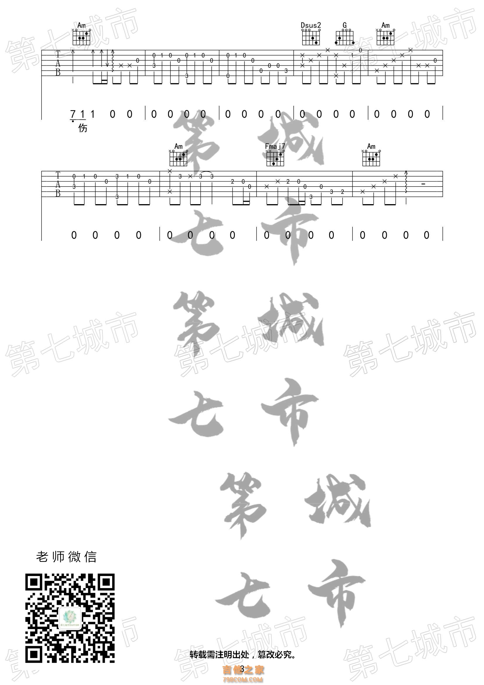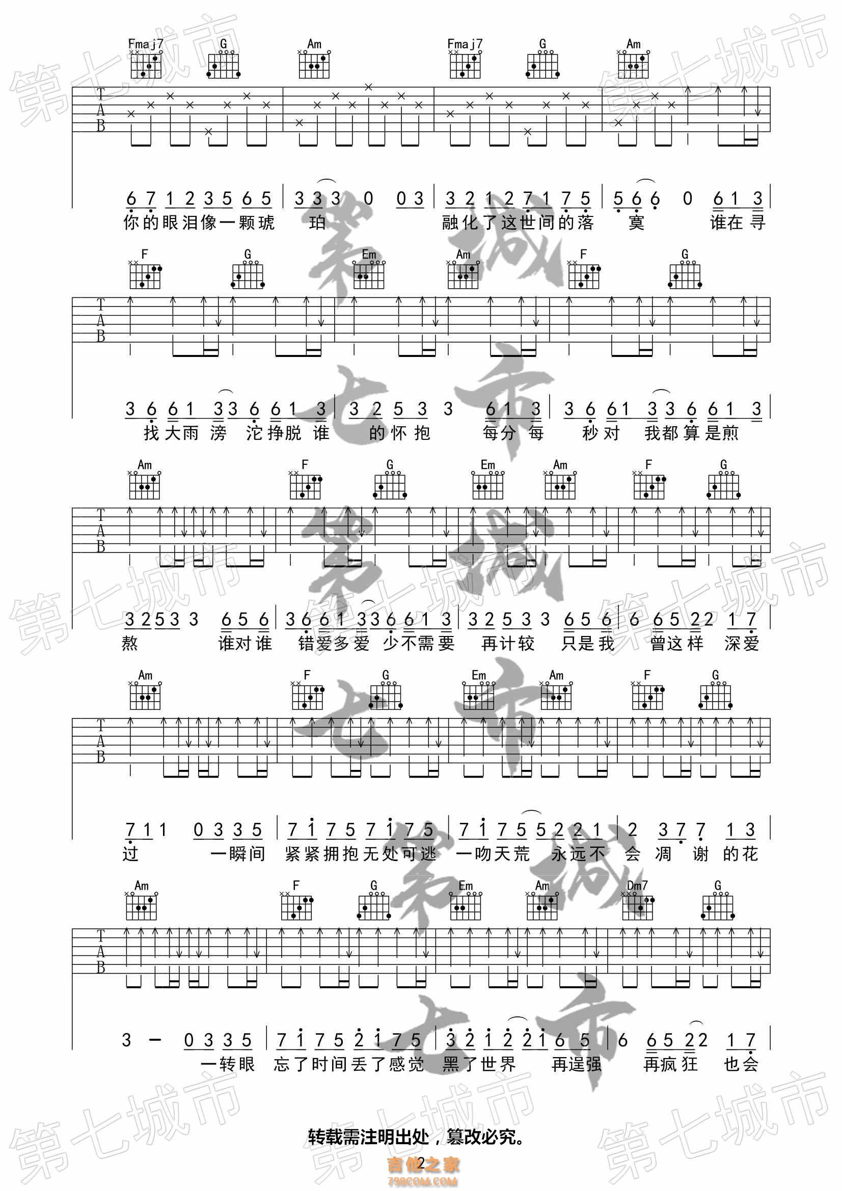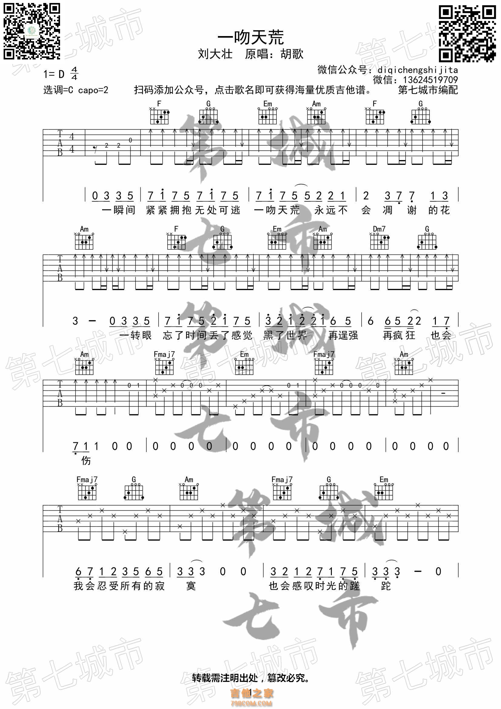 一吻天荒 吉他谱 刘大壮 第7城市guitar - 吉他谱