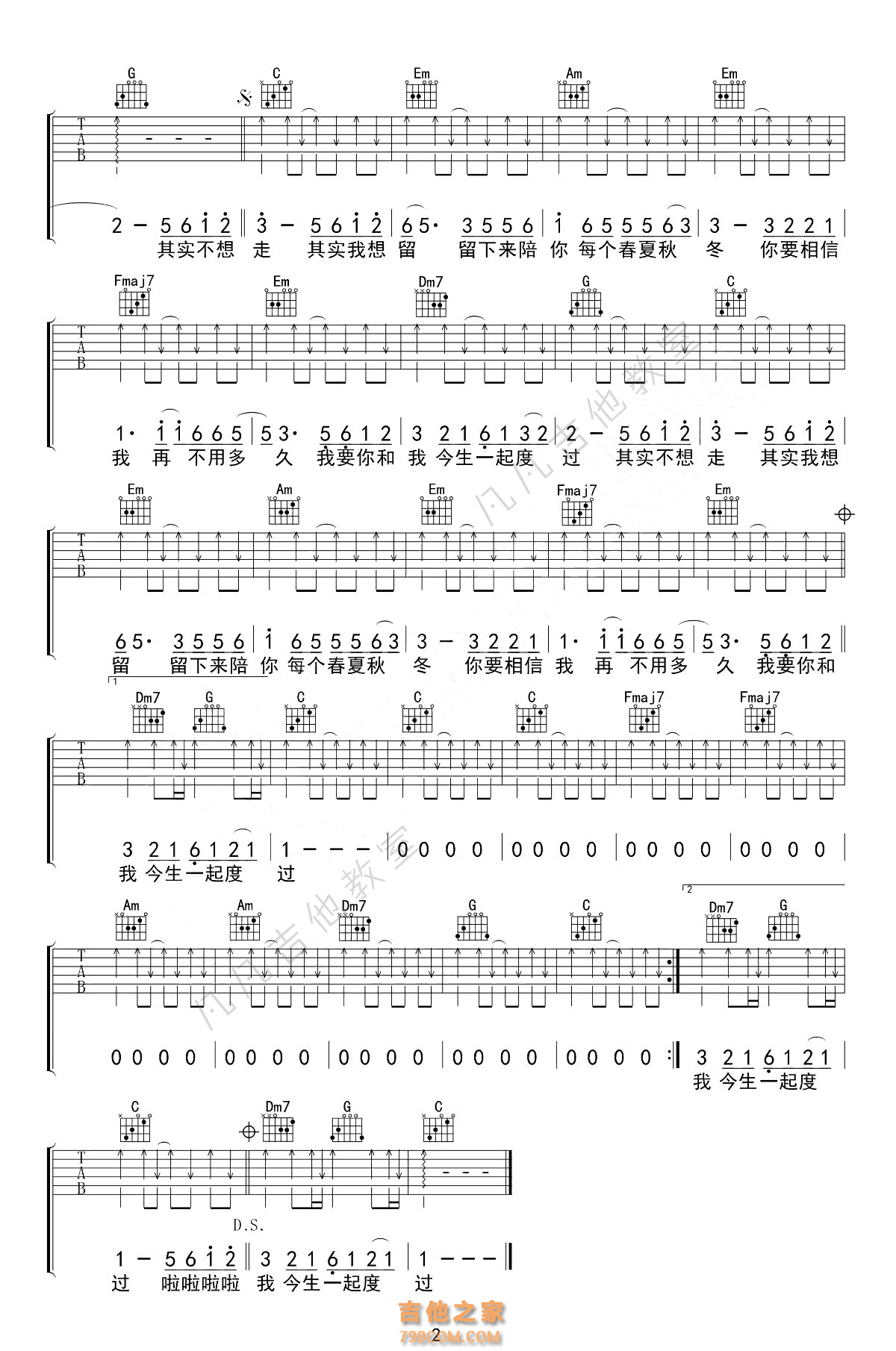 其实不想走,周华健(凡凡吉他编配) - 吉他谱