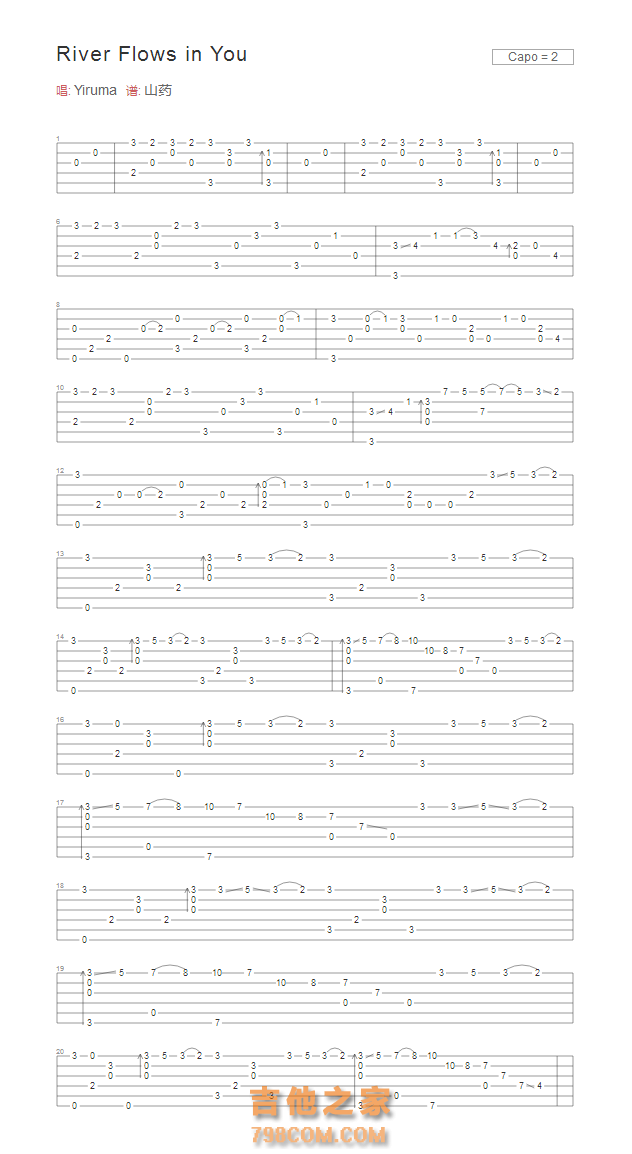 River Flows in You吉他指弹谱 郑成河 - 指弹吉他谱