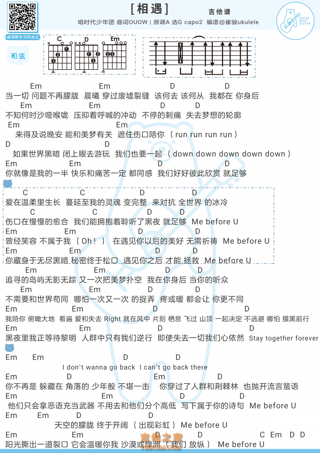 时代少年团《相遇》吉他弹唱谱 白熊音乐 - 吉他谱