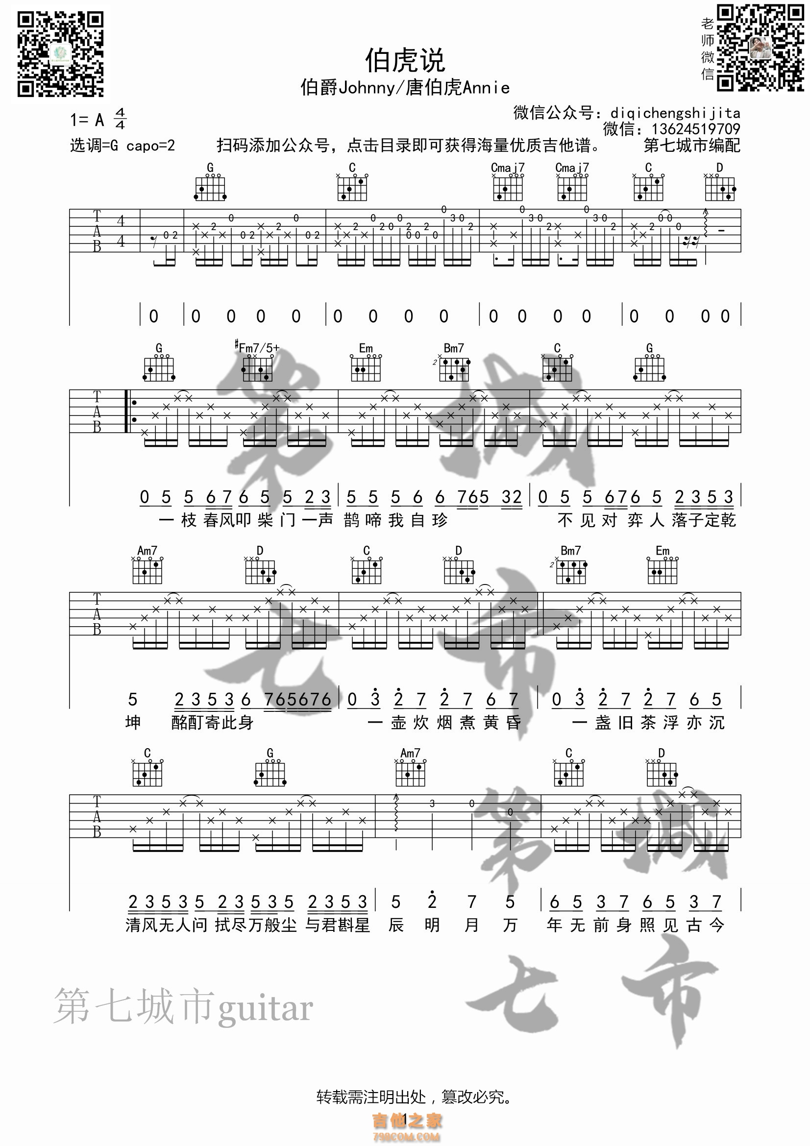 伯虎说 吉他谱 伯爵Johnny&唐伯虎Annie 第七城市编配 - 吉他谱