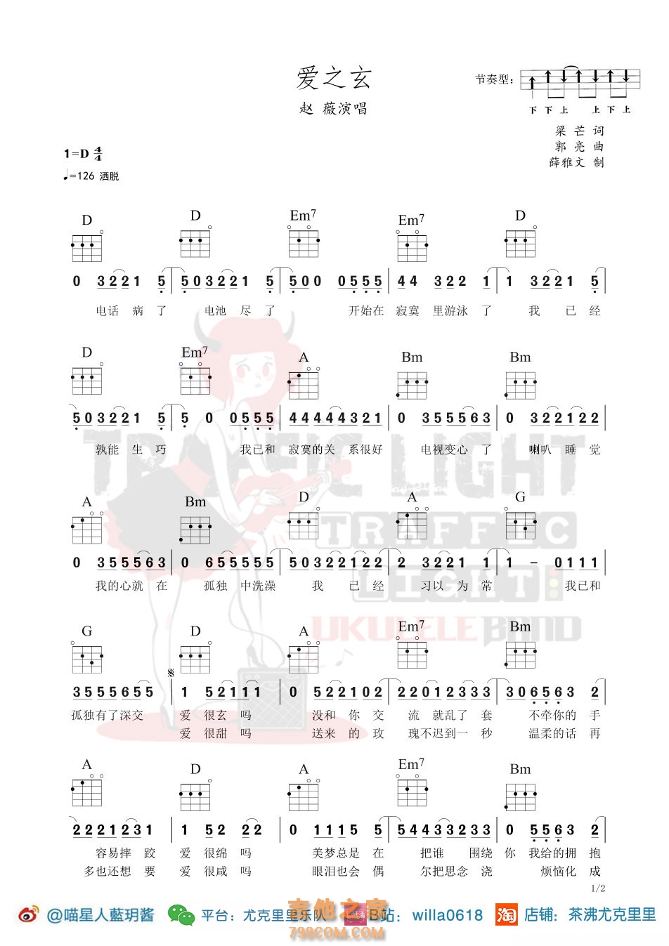 赵薇《爱之玄》尤克里里弹唱曲谱 - 尤克里里谱