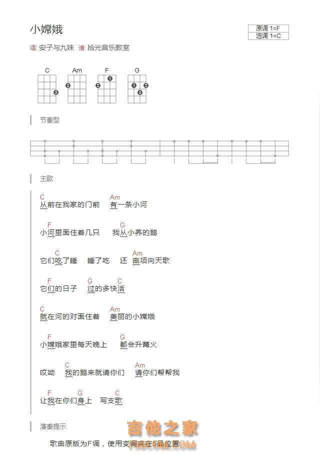 安子与九妹《小嫦娥》尤克里里谱C调