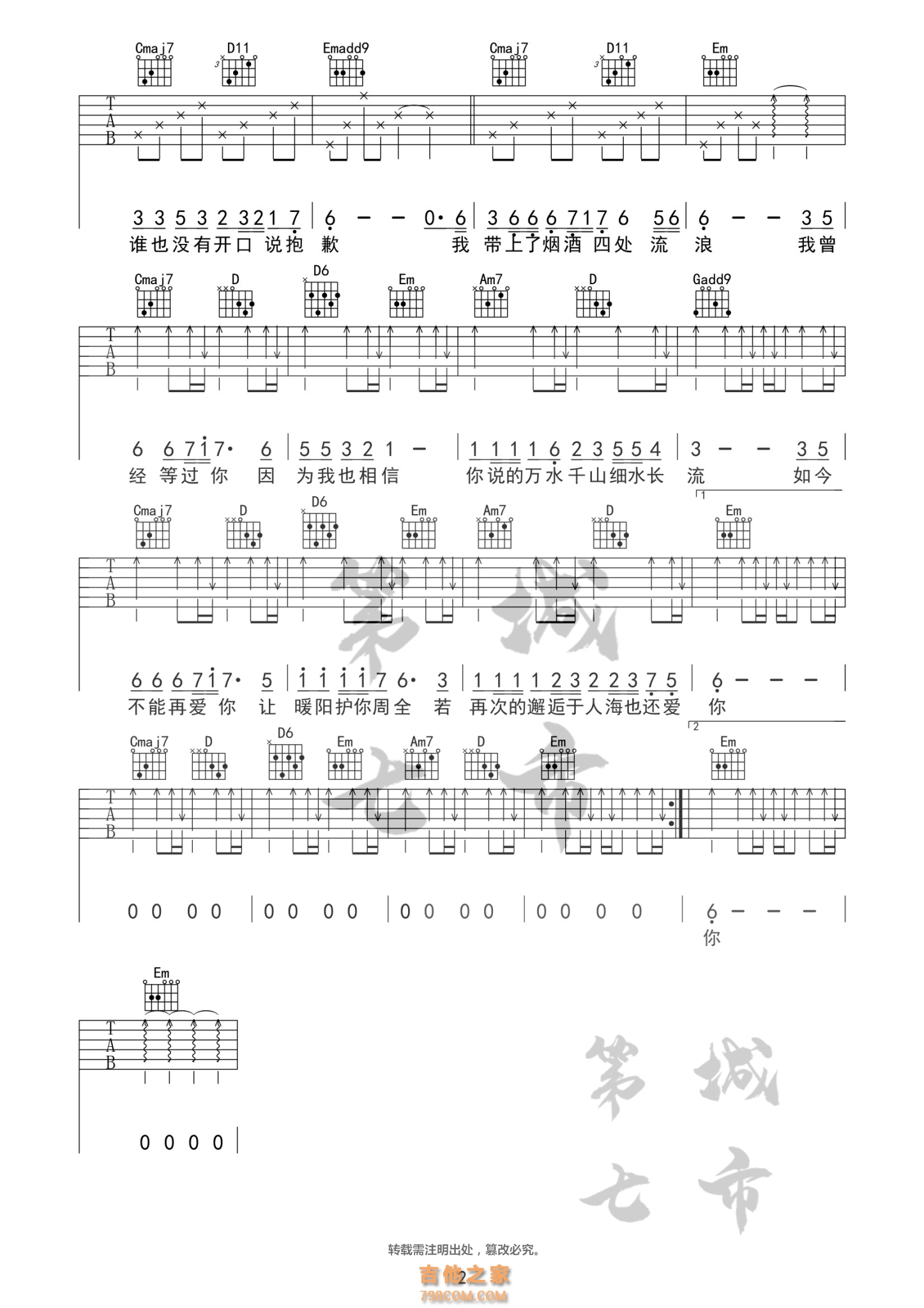 don't cry吉他谱采用了C调指法,由弦心距编配完成。《Don't cry》这首歌曲深受喜爱,在这首歌曲之中枪花乐队一改从前的愤怒激烈,沧桑哀婉低吟出一段令人荡气回肠的柔情曲,而歌曲表达出的无奈和失意让人动容。这首歌曲有很多个亮点,不止在歌收尾的地方,在歌起时就… -