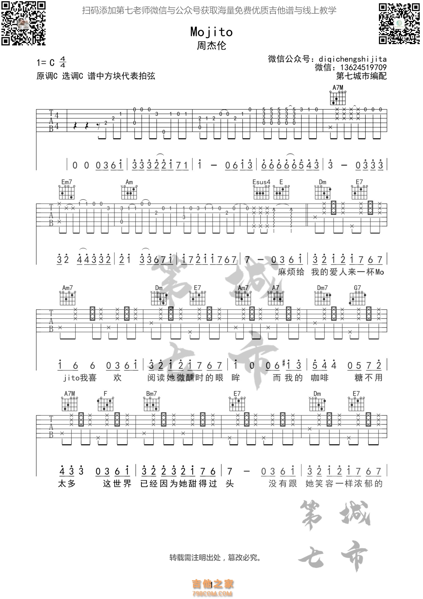 Mojito 周杰伦 吉他谱 - 吉他谱