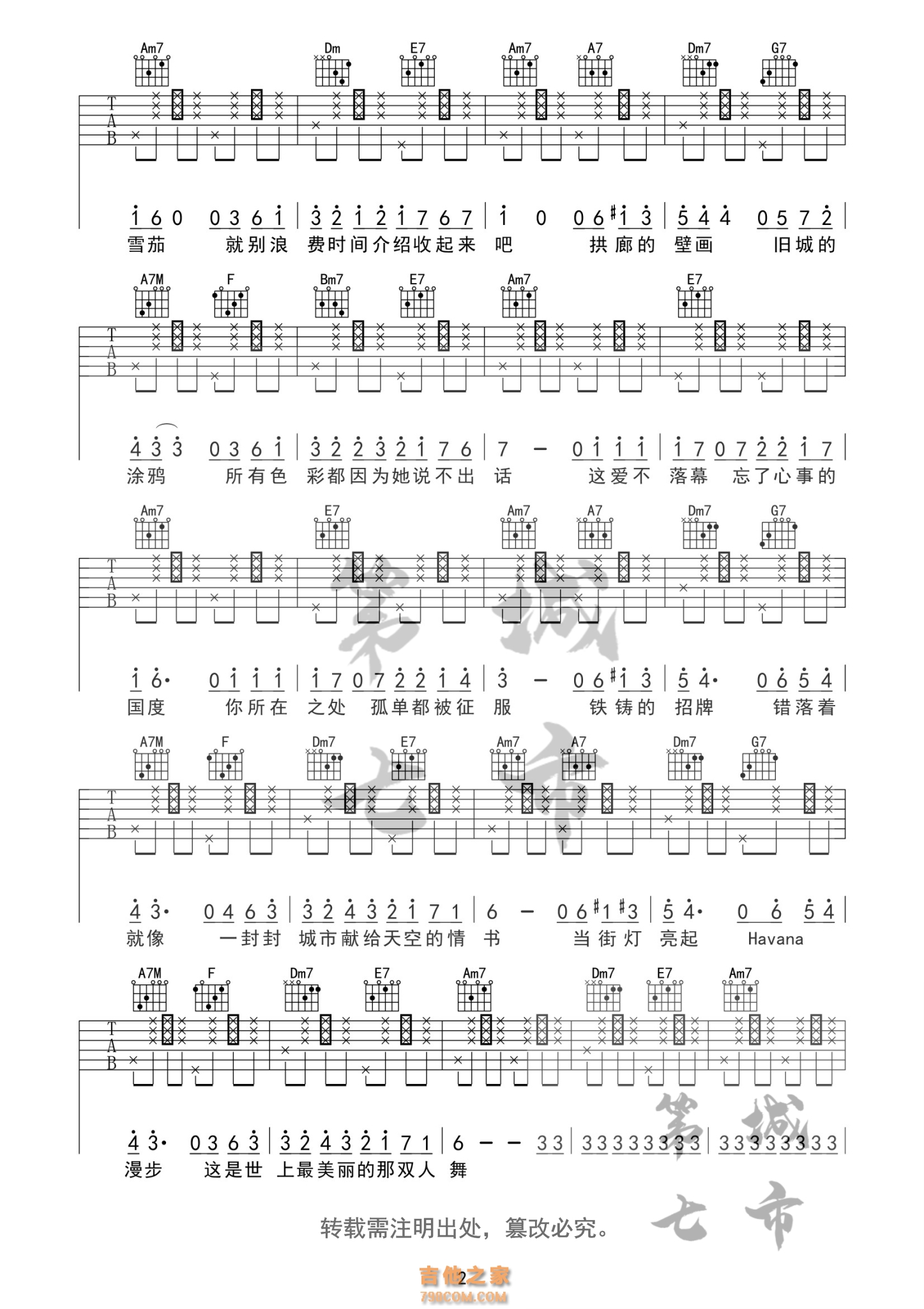 Casablanca卡萨布兰卡吉他谱_北非谍影 A调扫弦…