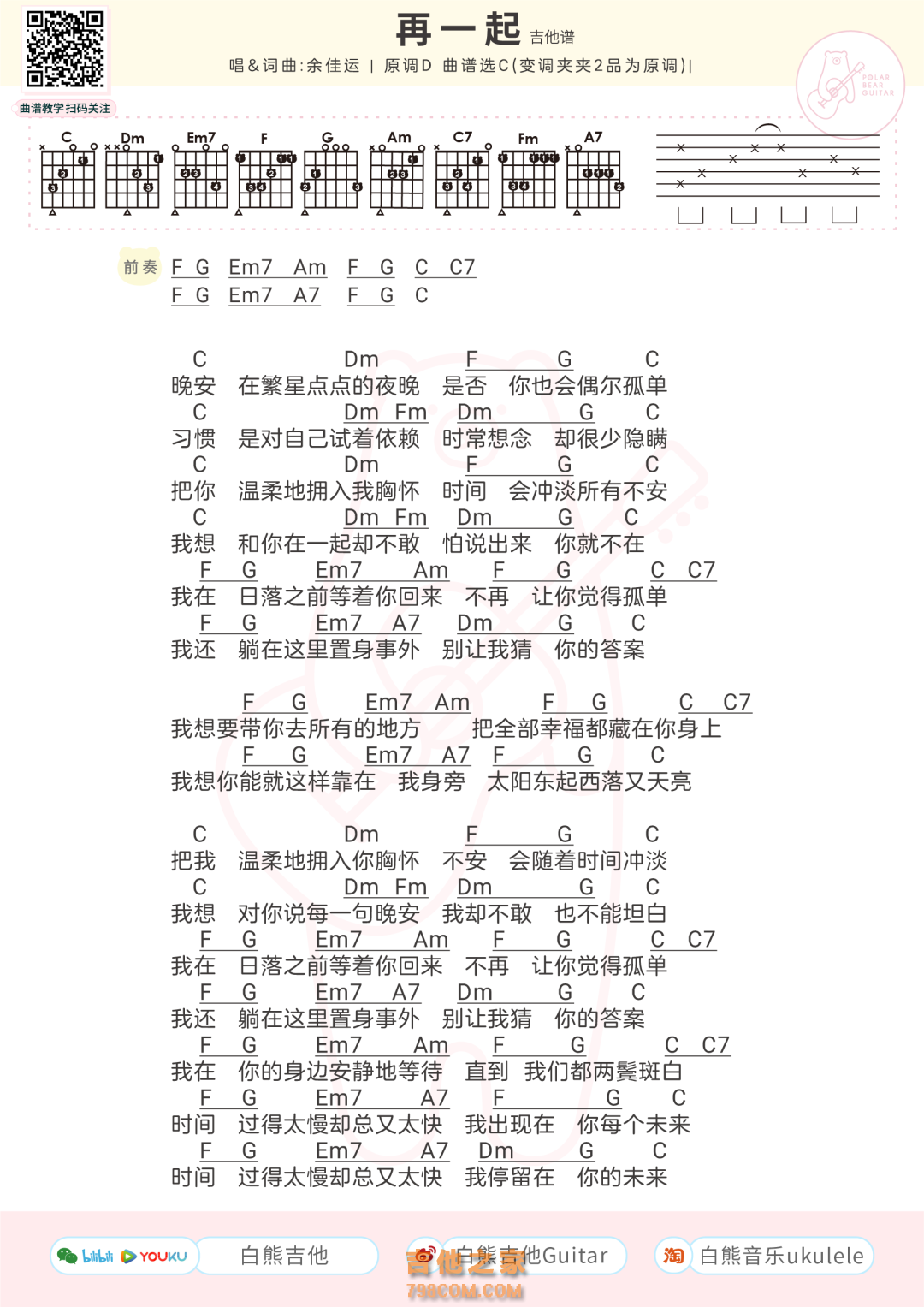 再一起吉他谱 余佳运 白熊音乐 - 吉他谱